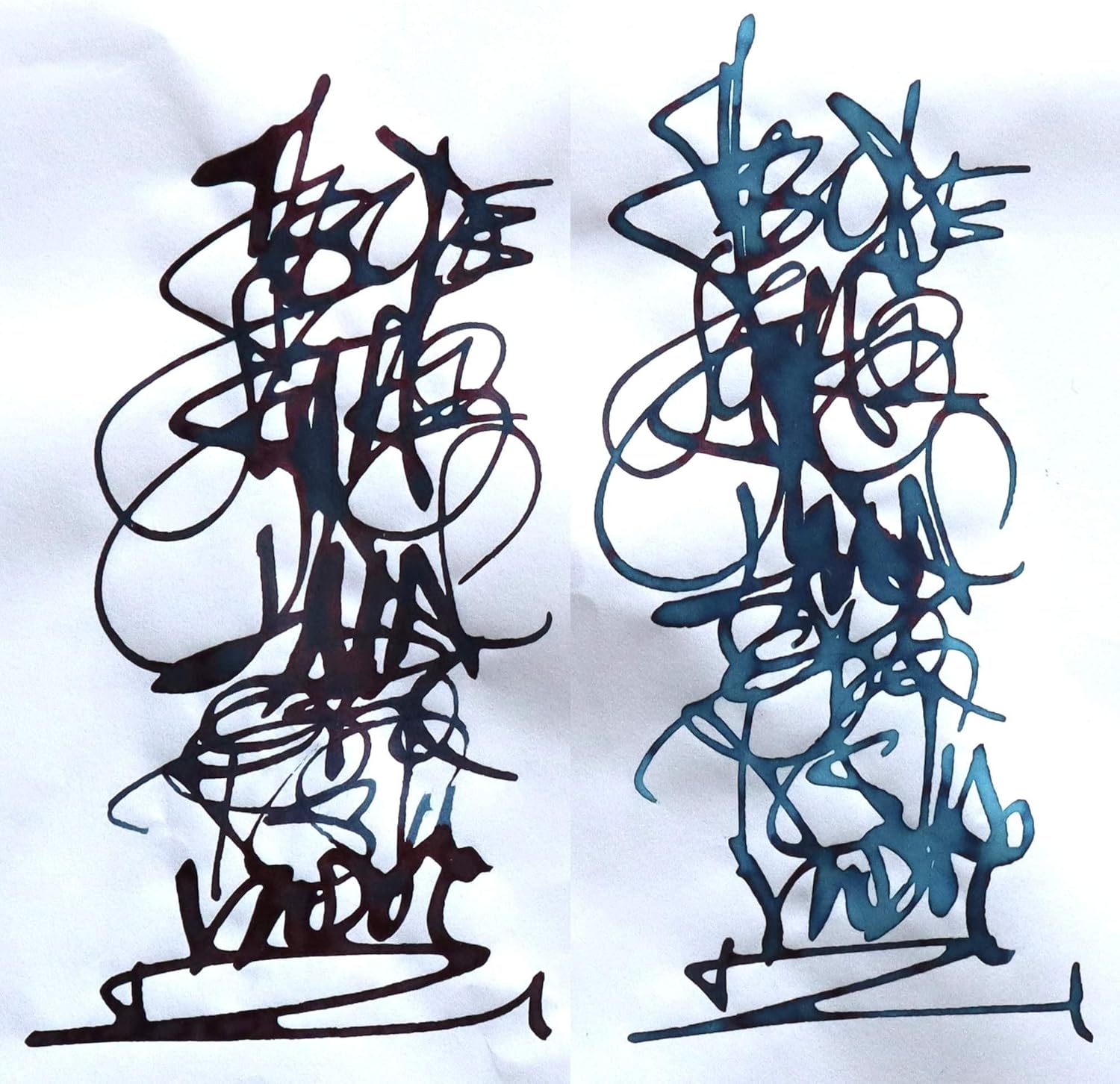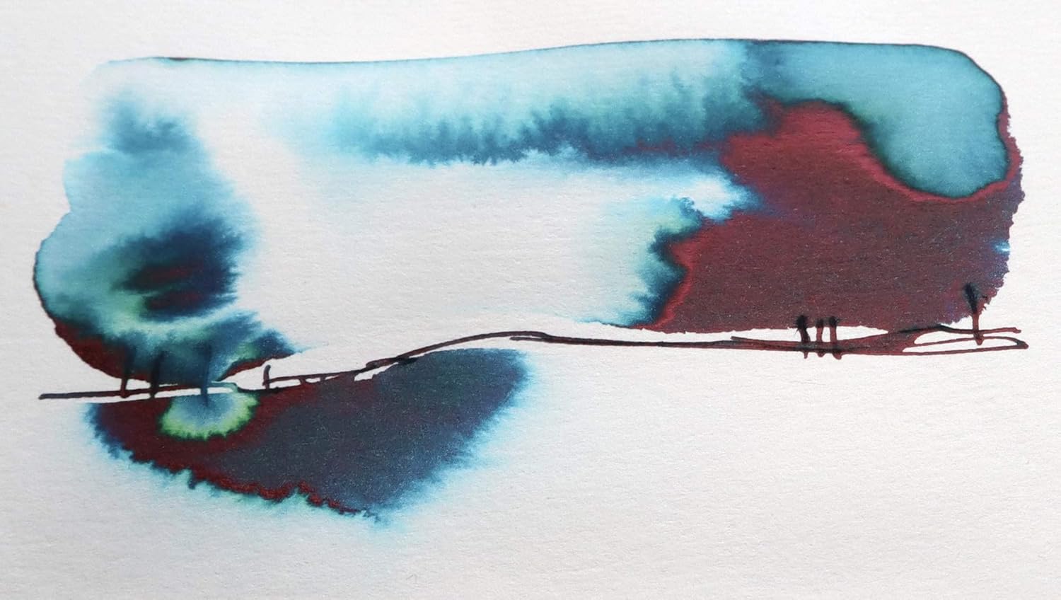 Inchiostro bicolore della fabbrica di inchiostro Diamine di Liverpool. Oltre al colore di base turchese, a seconda dell'intensità del flusso dell'inchiostro è visibile un colore rosso sulla superficie. 80 ml in elegante vetro Ottima scorrevolezza Adatto per ogni penna stilografica