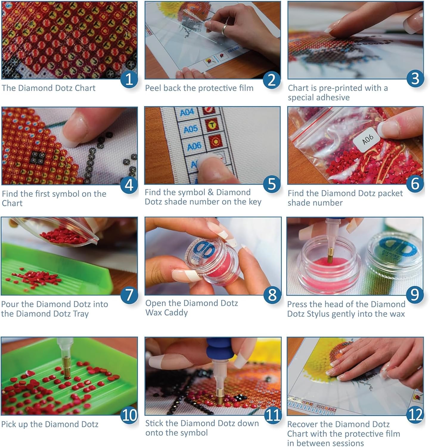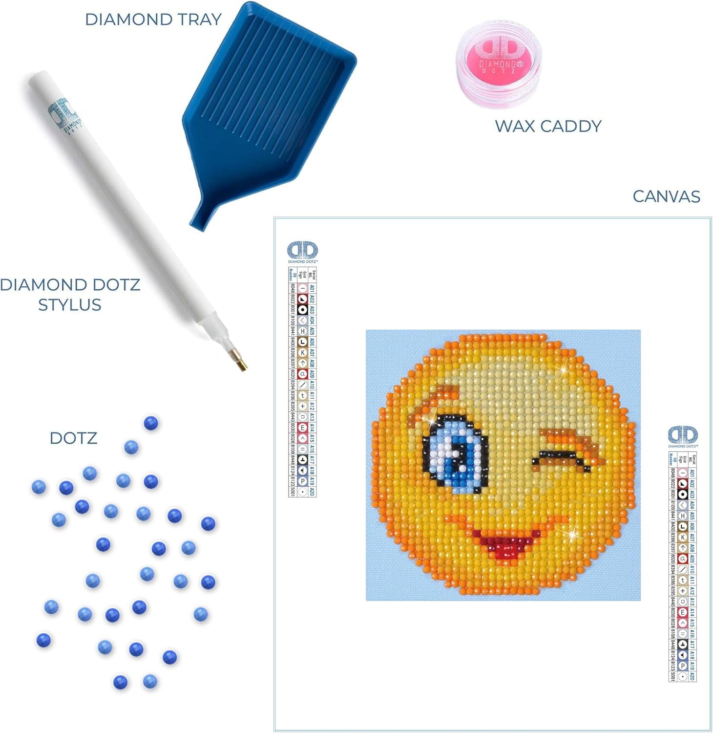 Questo kit di ricamo di alta qualità in tessuto stampato a colori contiene: diamanti dotz selezionati per colori, diamante dotz Stylus, Craft plateau e cera. Veloce e facile da fare Diamond Dotz è il nuovo piacere di creare con il grande e i piccoli motivi incredibili con diamanti. I kit contengono tutto ciò di cui avete bisogno per il tempo libero. A partire da 8 anni.