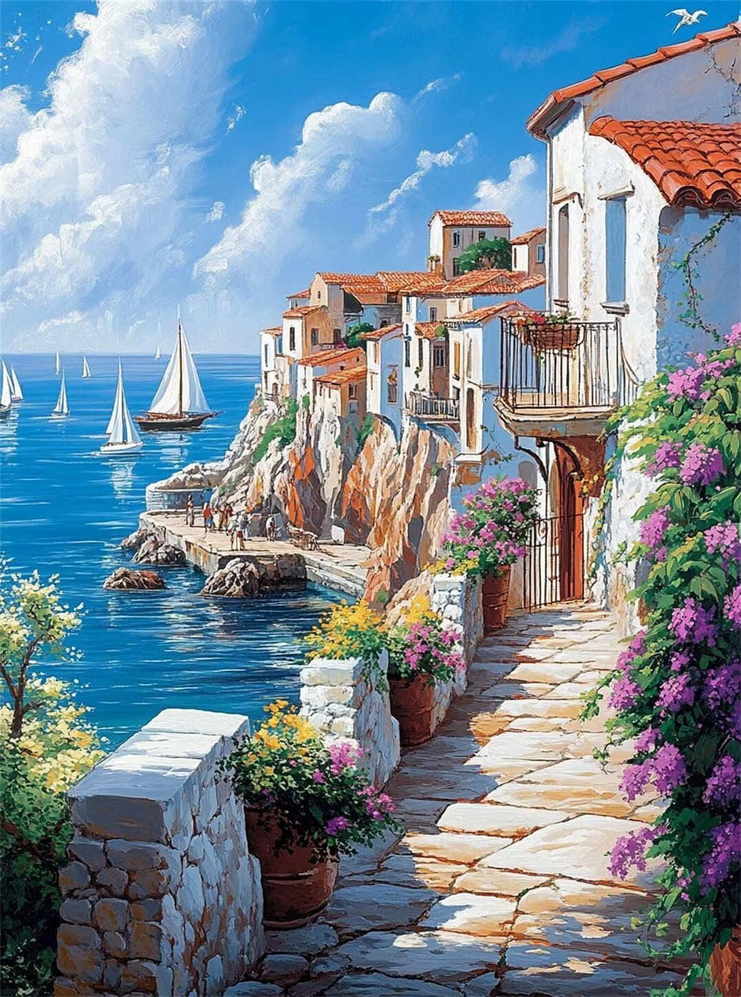 Diamond Painting Adulti, Piccola città Diamond Painting Kit Completo, Strada Diamantini Crystal Art, Strass Ricamo a Punto Croce Quadri con Perline, Decorazioni da Parete e Casa 90x180 cm c-4579