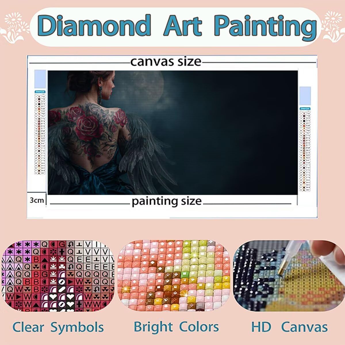 DIAMOND PAINTING SIZE AND PACK : Diamond painting ala è size 70x140cm, include 1 tela ad alta definizione, 1 penna a diamante, 1 vassoio a diamante cubico, 1 argilla adesiva, 5 sacchetti sigillati, il set contiene abbastanza diamanti quadrati colorati (un extra del 30%) e tutti gli strumenti necessari per realizzare diamond painting TELA PER DIAMOND PAINTING HD : Diamond painting donna tela utilizza una stampa ad alta definizione, garantendo che ogni numero o lettera sia chiaramente identificabile, trovarli facilmente, tela impermeabile e dalla consistenza uniforme, con una copertura superiore in plastica autoadesiva per mantenere la pittura appiccicosa e i diamond al sicuro COLORATA FULL DIAMOND PAINTING : Diamanti nei nostri kit diamond painting con trapano completo sono riccamente colorati e comprendono l'intero spettro di tonalità necessarie per l'opera d'arte. Realizzati con materiali di alta qualità, questi diamanti mostrano brillantezza, lucentezza e resistenza allo sbiadimento. La luce brillante riflessa dalle loro superfici anima l'intero dipinto DIAMOND PAINTING ALA : Diamond painting donna, qui est un kit de peinture au diamant adapté aux adultes, nos kits de diamond painting pour adultes sont disponibles dans une variété de styles, y compris des paysages, des animaux et plus encore, pour répondre à différents besoins personnalisés (vous pouvez rechercher des Lioauanh diamond painting) EXCELLENT SERVICE APRÈS-VENTE : Après réception du kit diamond painting, veuillez d'abord vérifier la diamond et les accessoires. Si un diamant est manquant ou endommagé, contactez-nous à temps et nous vous fournirons une solution sous 24 heures (L'image indique la taille maximale, veuillez acheter la taille souhaitée)