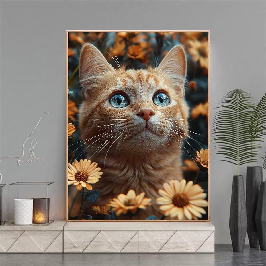 Diamond Painting Animale, 5D Gatto Diamond Painting Kit Completo, DIY Diamantini Crystal Art Hobby Creativi Adulti e Bambina, Strass Ricamo a Punto Croce Artigianale, Decorazione Casa 20x30cm 0Y-130