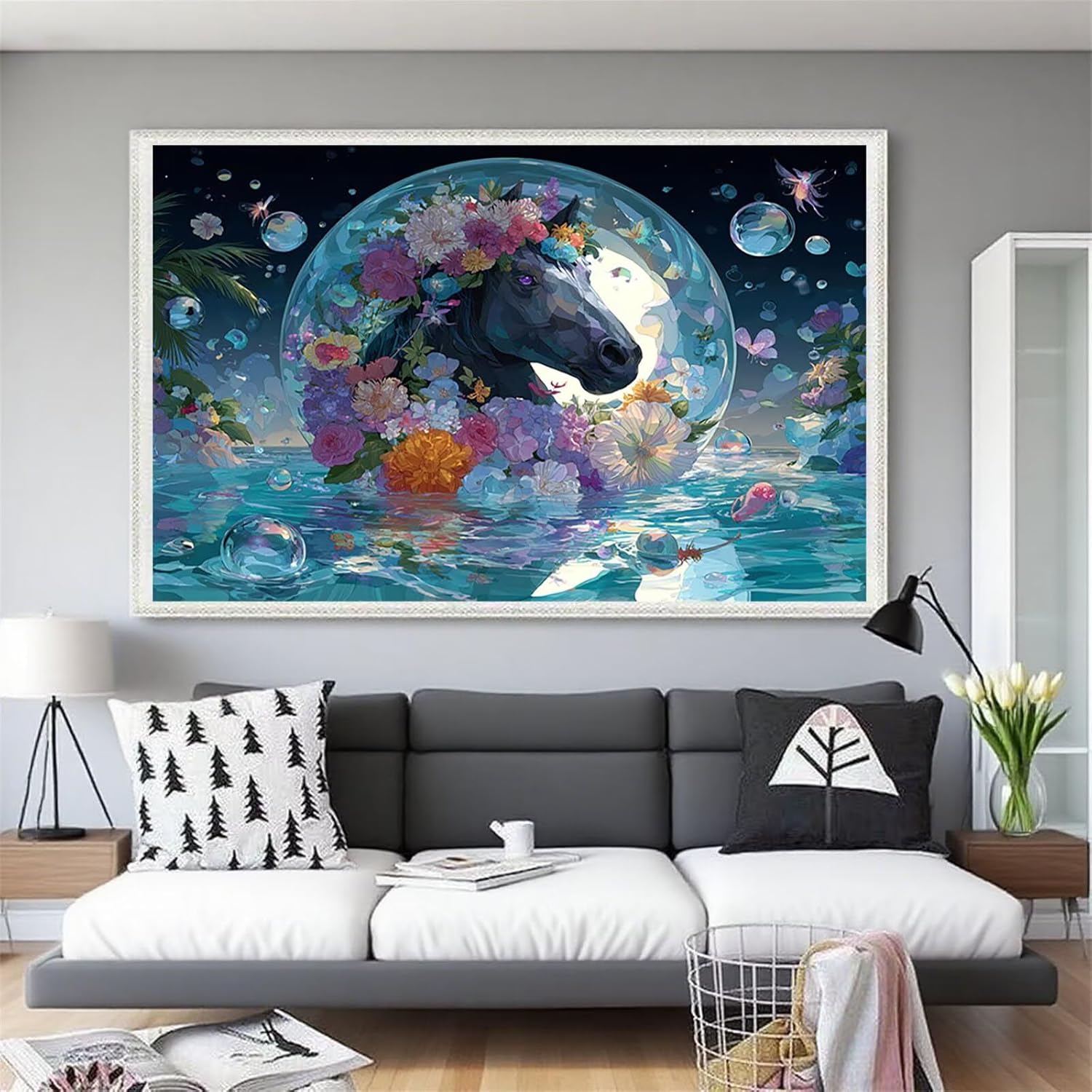 Diamond Painting Bambina, Diamond Painting Kit Completo Cavallo Pittura Diamante per Adulti, DIY Diamantini Crystal Art Lago Strass Ricamo a Punto Croce, Decorazione per Casa e Pareti 50x70 cm K-8957