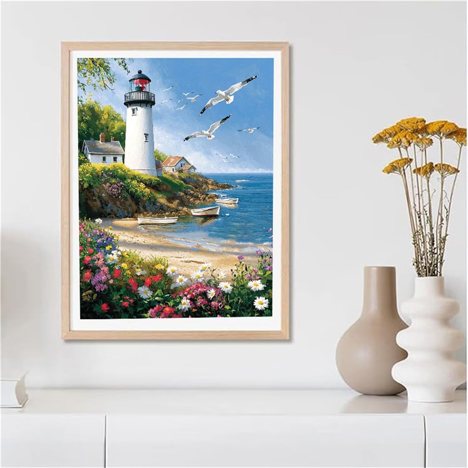 Diamond Painting Barche a Vela, Uccelli Diamond Painting Kit Completo, Passatempo per Adulti Principianti, Diamantini Crystal Art Bambini, Strass Ricamo Punto a Croce, Decorazione Interna 45x60cm A-16