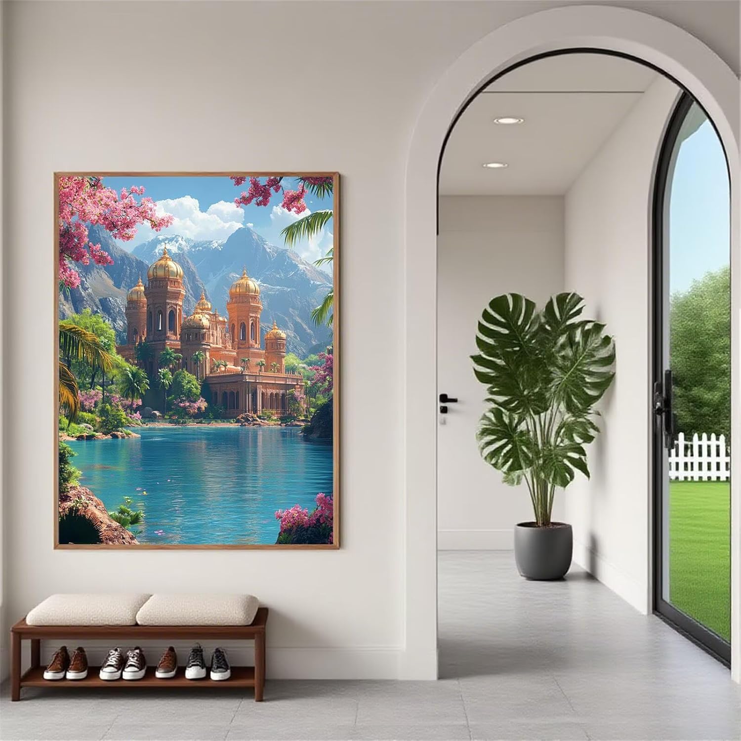 Diamond Painting Castello Diamond Painting Kit Completo, 5D Fiori di ciliegio Diamantini Crystal Art Hobby Creativi Adulti, DIY Diamante Strass Ricamo a Punto Croce per Adulti Bambini 100x70 cm K-9559