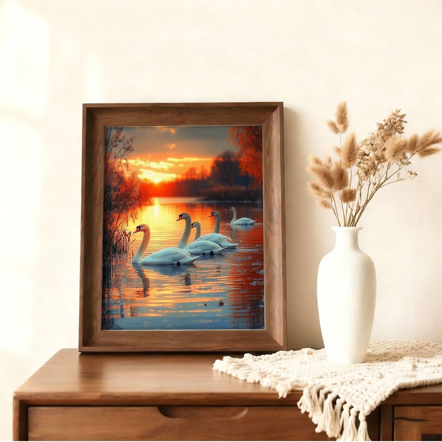 Diamond Painting Cigno Lago 30x40cm 5D Diamond Painting Adulti Diamantini Crystal Art Creativi Kit, Ricamo Artigianale Kit, Autunnali Halloween Decorazioni Pareti Pittura, Regalo di Natale A-j-274