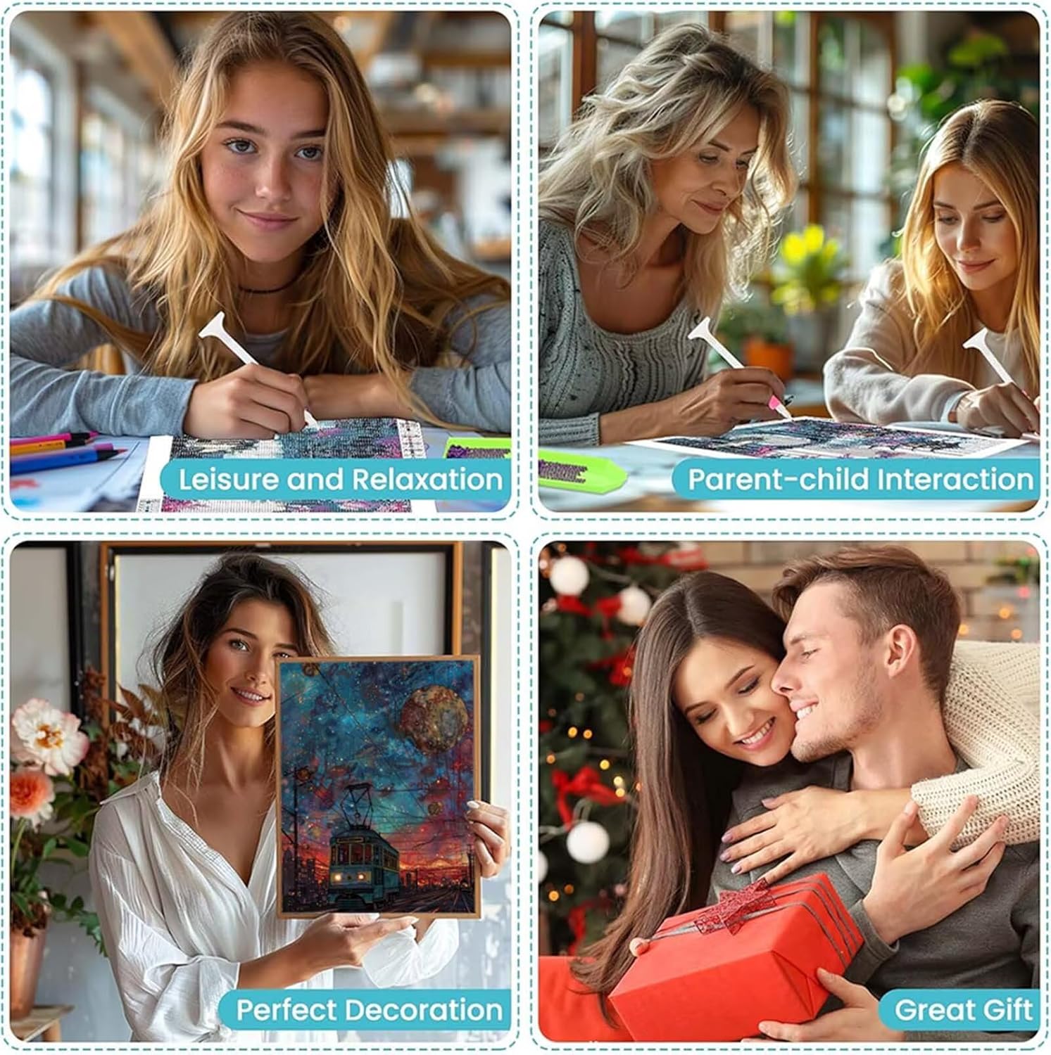 TELA IMPERMEABILE HD: Kit per diamond painting utilizzano una tela impermeabile HD colorata, dotata di uno sfondo molto adesivo che fa aderire saldamente i diamanti alla tela. Il codice DMC sul diamond painting corrisponde al colore della punta del trapano, i simboli delle lettere sono chiari e facili da capire, prevenendo efficacemente l'affaticamento degli occhi. PIÙ DIAMANTI: Diamanti sono completamente ricoperti, ognuno dei nostri diamanti presenta molteplici sfaccettature per un aspetto scintillante. Confezioniamo il 30% di diamanti in più in ogni confezione, così non dovrai mai preoccuparti di rimanere senza diamanti. IL FAI DA TE AGGIUNGE PIÙ DIVERTIMENTO ALLA VITA: Pittura con diamanti può regolare le emozioni e alleviare lo stress. Può anche coltivare la pazienza, migliorare le capacità pratiche e condividere momenti felici con la famiglia o gli amici. Adatto a persone di tutte le età. ARREDAMENTO CASA E REGALI: Nostro kit per diamond painting 5D è perfetto per decorare il soggiorno, la camera da letto, l'ufficio, il ristorante, il bar o qualsiasi altro luogo in cui desideri abbinare diversi stili di arredamento. È anche un regalo premuroso per genitori, amici o persone care per Natale, Halloween, Capodanno o compleanni. PITTURA DIAMANTE ADULTI SERVIZIO: Ogni kit di pittura con diamanti 5D fai da te offre una qualità ineguagliabile e un servizio clienti affidabile. Per qualsiasi domanda, non esitate a contattarci, ci occuperemo immediatamente della vostra richiesta.