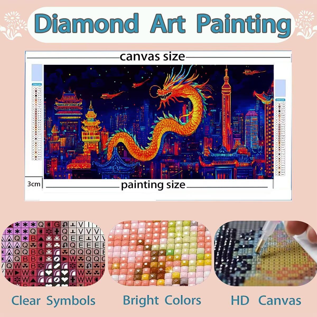 DIAMOND PAINTING SIZE AND PACK : Diamond painting città è size 90x180cm, include 1 tela ad alta definizione, 1 penna a diamante, 1 vassoio a diamante cubico, 1 argilla adesiva, 5 sacchetti sigillati, il set contiene abbastanza diamanti quadrati colorati (un extra del 30%) e tutti gli strumenti necessari per realizzare diamond painting TELA PER DIAMOND PAINTING HD : Diamond painting drago tela utilizza una stampa ad alta definizione, garantendo che ogni numero o lettera sia chiaramente identificabile, trovarli facilmente, tela impermeabile e dalla consistenza uniforme, con una copertura superiore in plastica autoadesiva per mantenere la pittura appiccicosa e i diamond al sicuro COLORATA FULL DIAMOND PAINTING : Diamanti nei nostri kit diamond painting con trapano completo sono riccamente colorati e comprendono l'intero spettro di tonalità necessarie per l'opera d'arte. Realizzati con materiali di alta qualità, questi diamanti mostrano brillantezza, lucentezza e resistenza allo sbiadimento. La luce brillante riflessa dalle loro superfici anima l'intero dipinto DIAMOND PAINTING CITTÀ : Diamond painting drago, qui est un kit de peinture au diamant adapté aux adultes, nos kits de diamond painting pour adultes sont disponibles dans une variété de styles, y compris des paysages, des animaux et plus encore, pour répondre à différents besoins personnalisés (vous pouvez rechercher des Lioauanh diamond painting) EXCELLENT SERVICE APRÈS-VENTE : Après réception du kit diamond painting, veuillez d'abord vérifier la diamond et les accessoires. Si un diamant est manquant ou endommagé, contactez-nous à temps et nous vous fournirons une solution sous 24 heures (L'image indique la taille maximale, veuillez acheter la taille souhaitée)