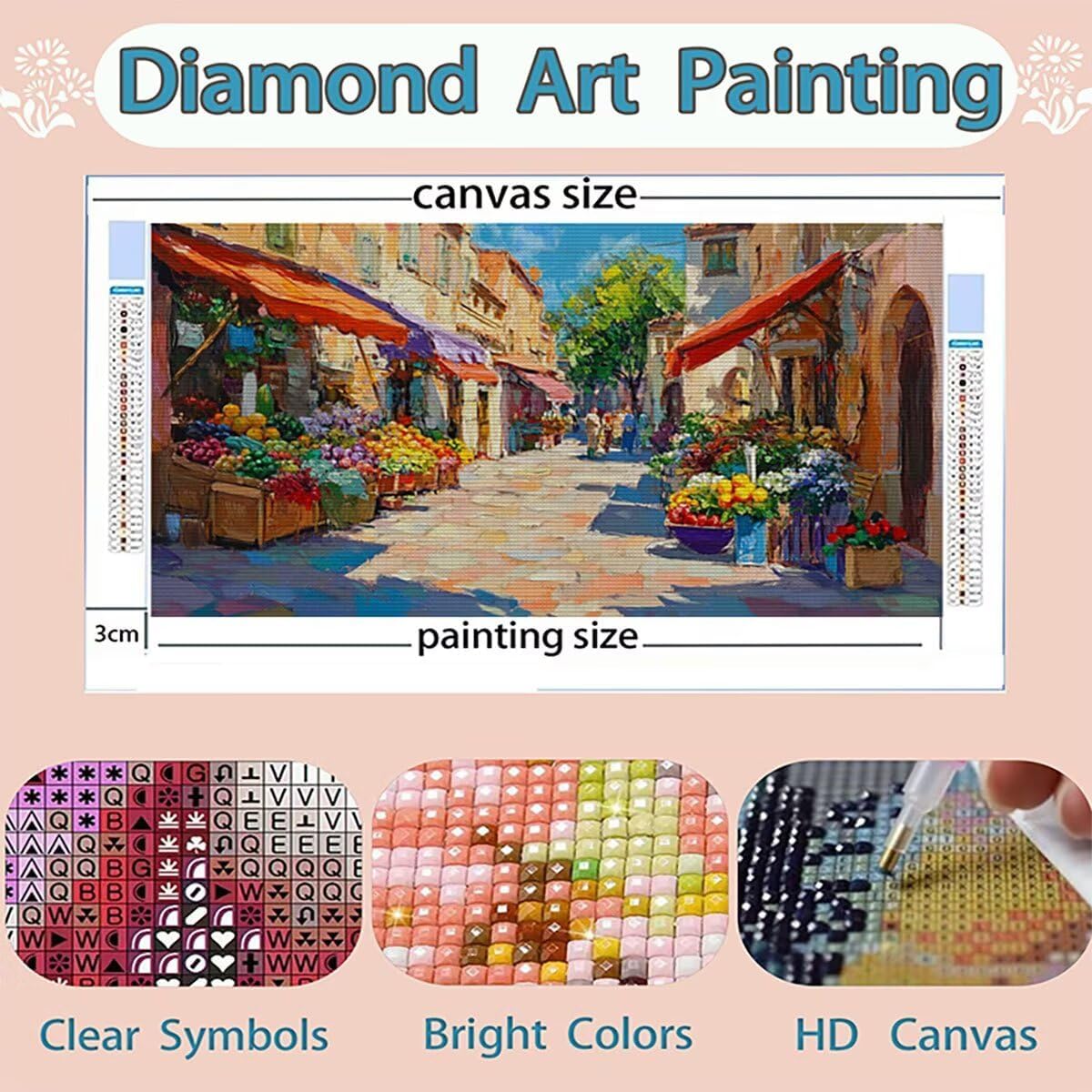 DIAMOND PAINTING SIZE AND PACK : Diamond painting città è size 40x80cm, include 1 tela ad alta definizione, 1 penna a diamante, 1 vassoio a diamante cubico, 1 argilla adesiva, 5 sacchetti sigillati, il set contiene abbastanza diamanti quadrati colorati (un extra del 30%) e tutti gli strumenti necessari per realizzare diamond painting TELA PER DIAMOND PAINTING HD : Diamond painting fiore tela utilizza una stampa ad alta definizione, garantendo che ogni numero o lettera sia chiaramente identificabile, trovarli facilmente, tela impermeabile e dalla consistenza uniforme, con una copertura superiore in plastica autoadesiva per mantenere la pittura appiccicosa e i diamond al sicuro COLORATA FULL DIAMOND PAINTING : Diamanti nei nostri kit diamond painting con trapano completo sono riccamente colorati e comprendono l'intero spettro di tonalità necessarie per l'opera d'arte. Realizzati con materiali di alta qualità, questi diamanti mostrano brillantezza, lucentezza e resistenza allo sbiadimento. La luce brillante riflessa dalle loro superfici anima l'intero dipinto DIAMOND PAINTING CITTÀ : Diamond painting fiore, qui est un kit de peinture au diamant adapté aux adultes, nos kits de diamond painting pour adultes sont disponibles dans une variété de styles, y compris des paysages, des animaux et plus encore, pour répondre à différents besoins personnalisés (vous pouvez rechercher des Lioauanh diamond painting) EXCELLENT SERVICE APRÈS-VENTE : Après réception du kit diamond painting, veuillez d'abord vérifier la diamond et les accessoires. Si un diamant est manquant ou endommagé, contactez-nous à temps et nous vous fournirons une solution sous 24 heures (L'image indique la taille maximale, veuillez acheter la taille souhaitée)
