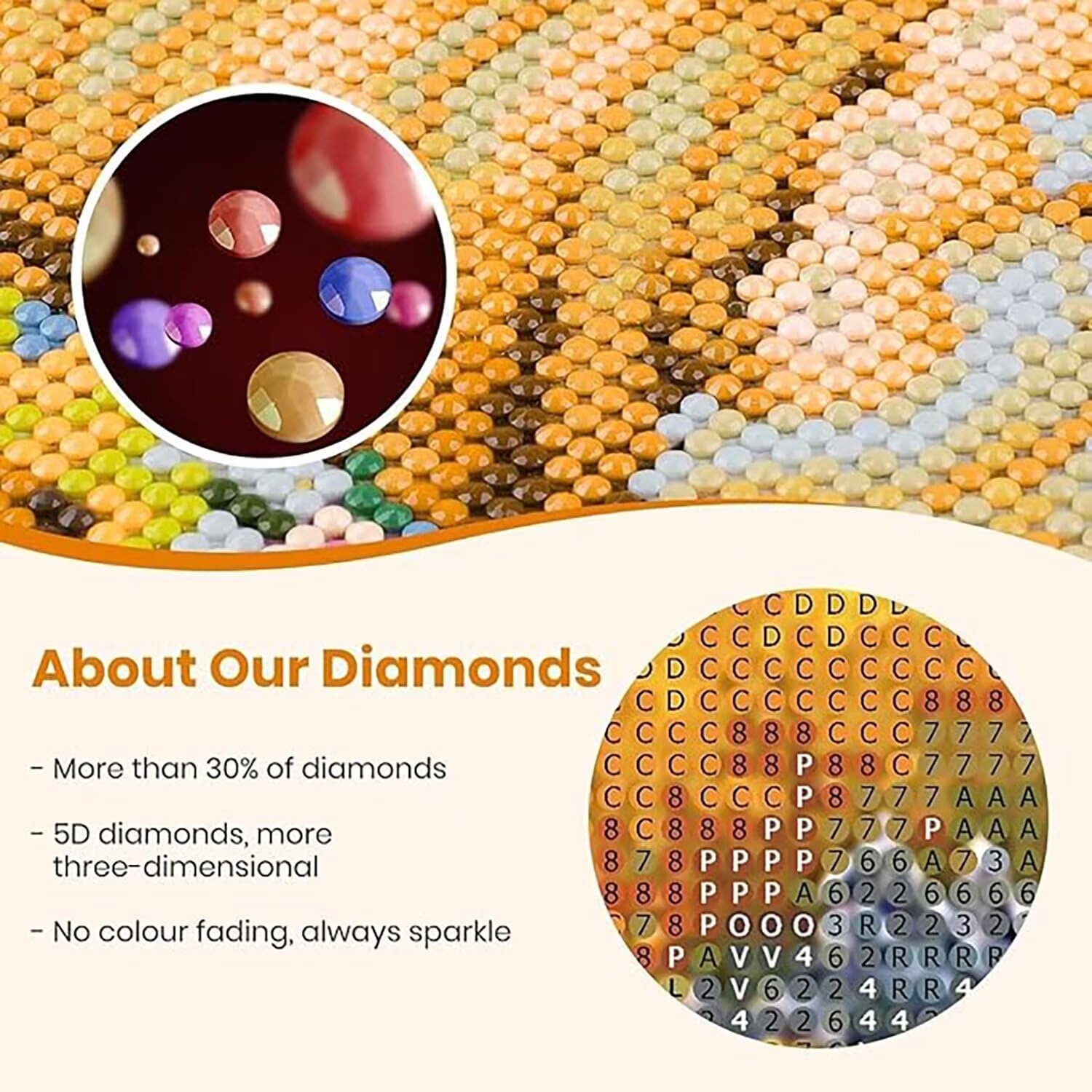 💎【DIAMOND PAINTING KIT COMPLETO】: Il nostro kit per pittura a diamante include tutti gli strumenti necessari, quindi non è necessario acquistare strumenti aggiuntivi. Sono incluse perline extra del 30% per completare il kit senza intoppi. In caso di domande, vi preghiamo di contattarci immediatamente e ci occuperemo subito dopo aver ricevuto le informazioni. 💎【TEMPO PERFETTO IN FAMIGLIA】: i diamond painting sono semilavorati e devi finirli da solo. I dipinti a diamante possono migliorare la pazienza, la concentrazione e le abilità pratiche, riempire il tempo libero degli anziani, arricchire i giovani e alleviare lo stress 💎【DIAMOND PAINTING ALTA QUALITÀ】: Il trapano è realizzato in resina di alta qualità. Il trapano completo ha una forte terza dimensione, che rende l'intero dipinto più tridimensionale e vivido. I diamanti super flash appaiono lucenti e possono essere conservati per molti anni senza sbiadire, più vibranti e brillanti. 💎【TELA HD】: qualità della tela HD con immagini e simboli nitidi, la tela è dotata di uno sfondo molto adesivo che attacca saldamente i diamanti alla tela, in modo da poter completare facilmente l'immagine. 💎【DECORAZIONI DA PARETE E REGALI ELEGANTI】: Il nostro diamond painting kit completo 5D perfetto per decorare il tuo soggiorno, la tua camera da letto, il tuo ufficio, il tuo ristorante, il tuo bar o qualsiasi altro luogo in cui desideri abbinare diversi stili di decorazione, ed è anche un regalo perfetto per Natale, Ringraziamento, Halloween, compleanni e altre feste.