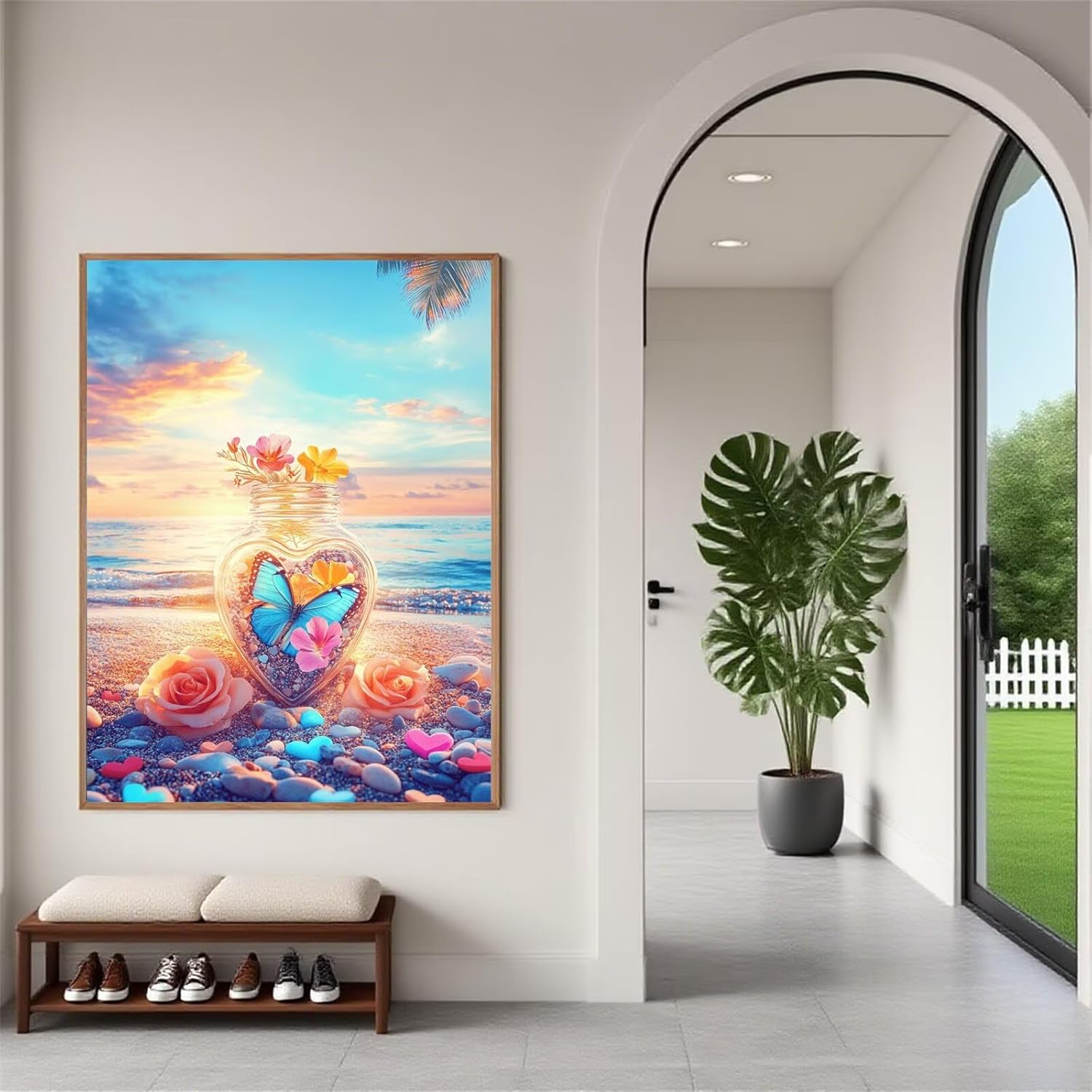Diamond Painting Farfalla Diamond Painting Kit Completo, 5D Spiaggia Diamantini Crystal Art Hobby Creativi Adulti, DIY Diamante Strass Ricamo a Punto Croce per Adulti Bambini Regali 60x45 cm K-9616