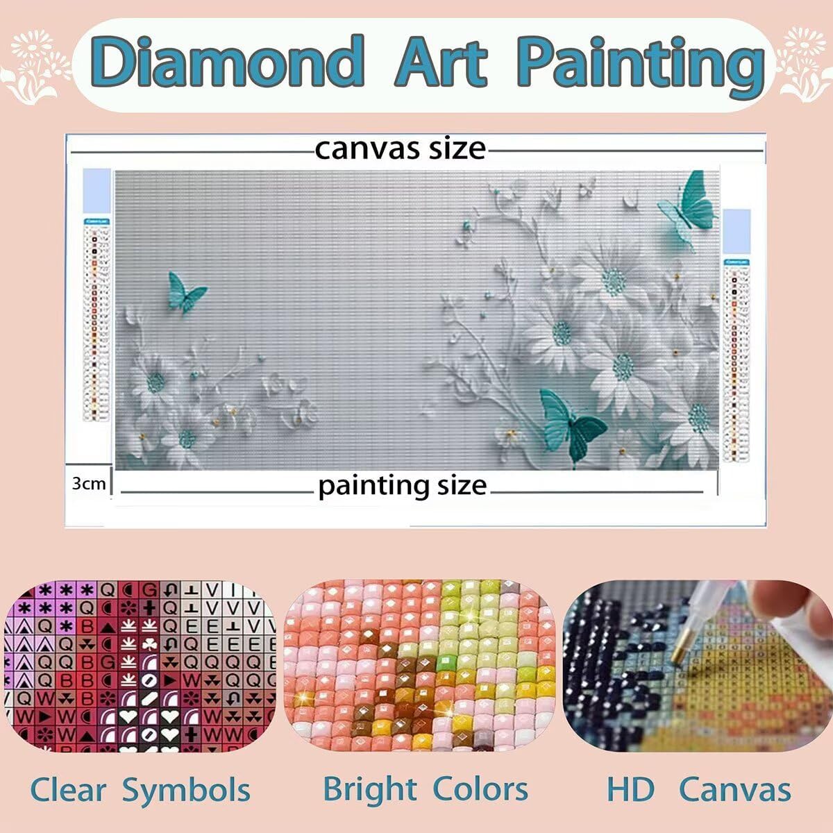 DIAMOND PAINTING SIZE AND PACK : Diamond painting fiore è size 40x80cm, include 1 tela ad alta definizione, 1 penna a diamante, 1 vassoio a diamante cubico, 1 argilla adesiva, 5 sacchetti sigillati, il set contiene abbastanza diamanti quadrati colorati (un extra del 30%) e tutti gli strumenti necessari per realizzare diamond painting TELA PER DIAMOND PAINTING HD : Diamond painting farfalla tela utilizza una stampa ad alta definizione, garantendo che ogni numero o lettera sia chiaramente identificabile, trovarli facilmente, tela impermeabile e dalla consistenza uniforme, con una copertura superiore in plastica autoadesiva per mantenere la pittura appiccicosa e i diamond al sicuro COLORATA FULL DIAMOND PAINTING : Diamanti nei nostri kit diamond painting con trapano completo sono riccamente colorati e comprendono l'intero spettro di tonalità necessarie per l'opera d'arte. Realizzati con materiali di alta qualità, questi diamanti mostrano brillantezza, lucentezza e resistenza allo sbiadimento. La luce brillante riflessa dalle loro superfici anima l'intero dipinto DIAMOND PAINTING FIORE : Diamond painting farfalla, qui est un kit de peinture au diamant adapté aux adultes, nos kits de diamond painting pour adultes sont disponibles dans une variété de styles, y compris des paysages, des animaux et plus encore, pour répondre à différents besoins personnalisés (vous pouvez rechercher des Lioauanh diamond painting) EXCELLENT SERVICE APRÈS-VENTE : Après réception du kit diamond painting, veuillez d'abord vérifier la diamond et les accessoires. Si un diamant est manquant ou endommagé, contactez-nous à temps et nous vous fournirons une solution sous 24 heures (L'image indique la taille maximale, veuillez acheter la taille souhaitée)