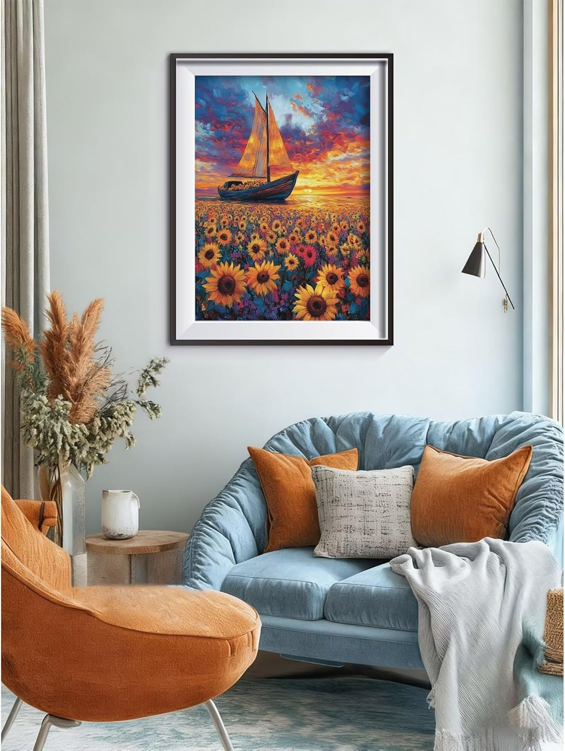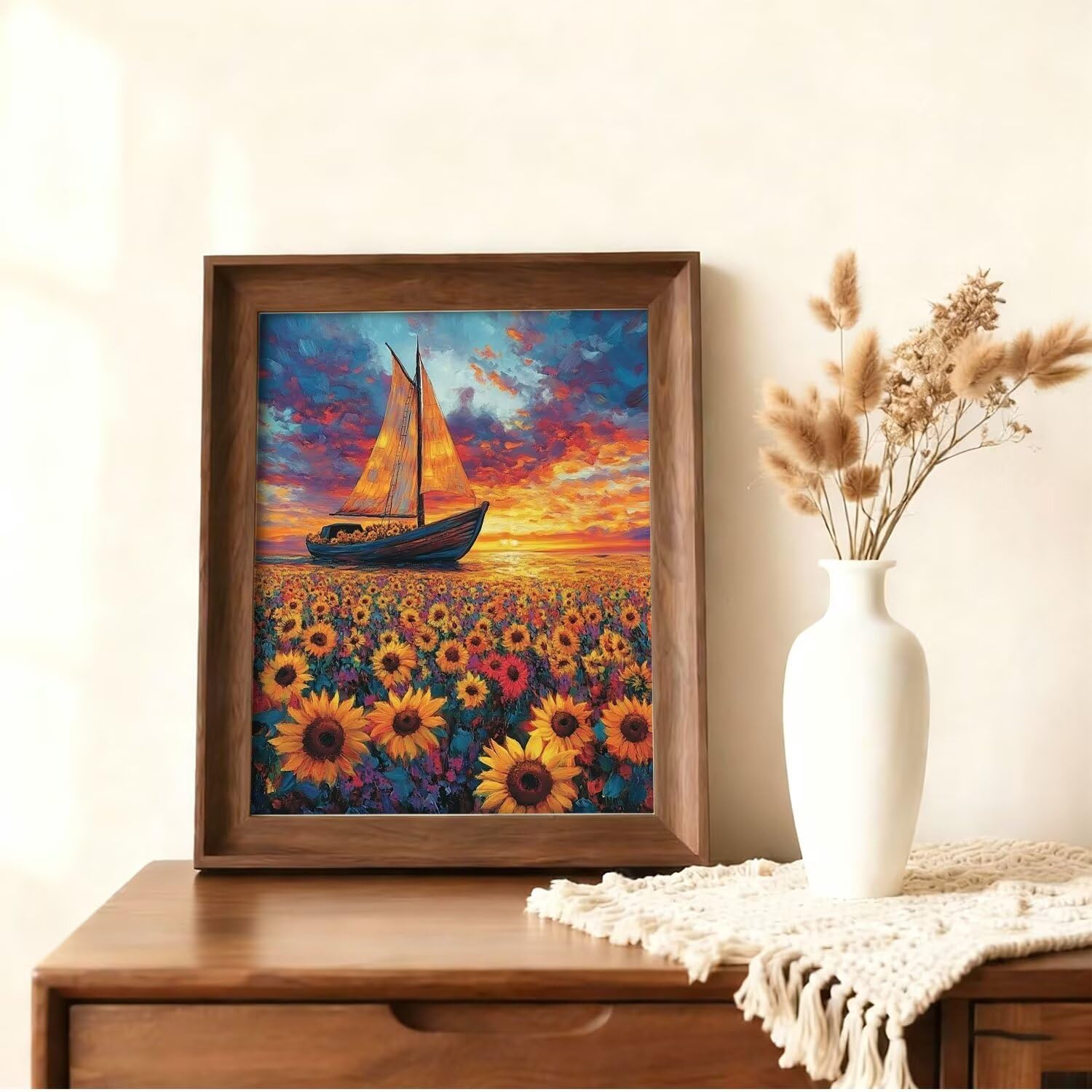 Diamond Painting Girasole Barca 40x55cm 5D Diamond Painting Adulti Diamantini Crystal Art Creativi Kit, Ricamo Artigianale Kit, Autunnali Halloween Decorazioni Pareti Pittura, Regalo di Natale A-j-452