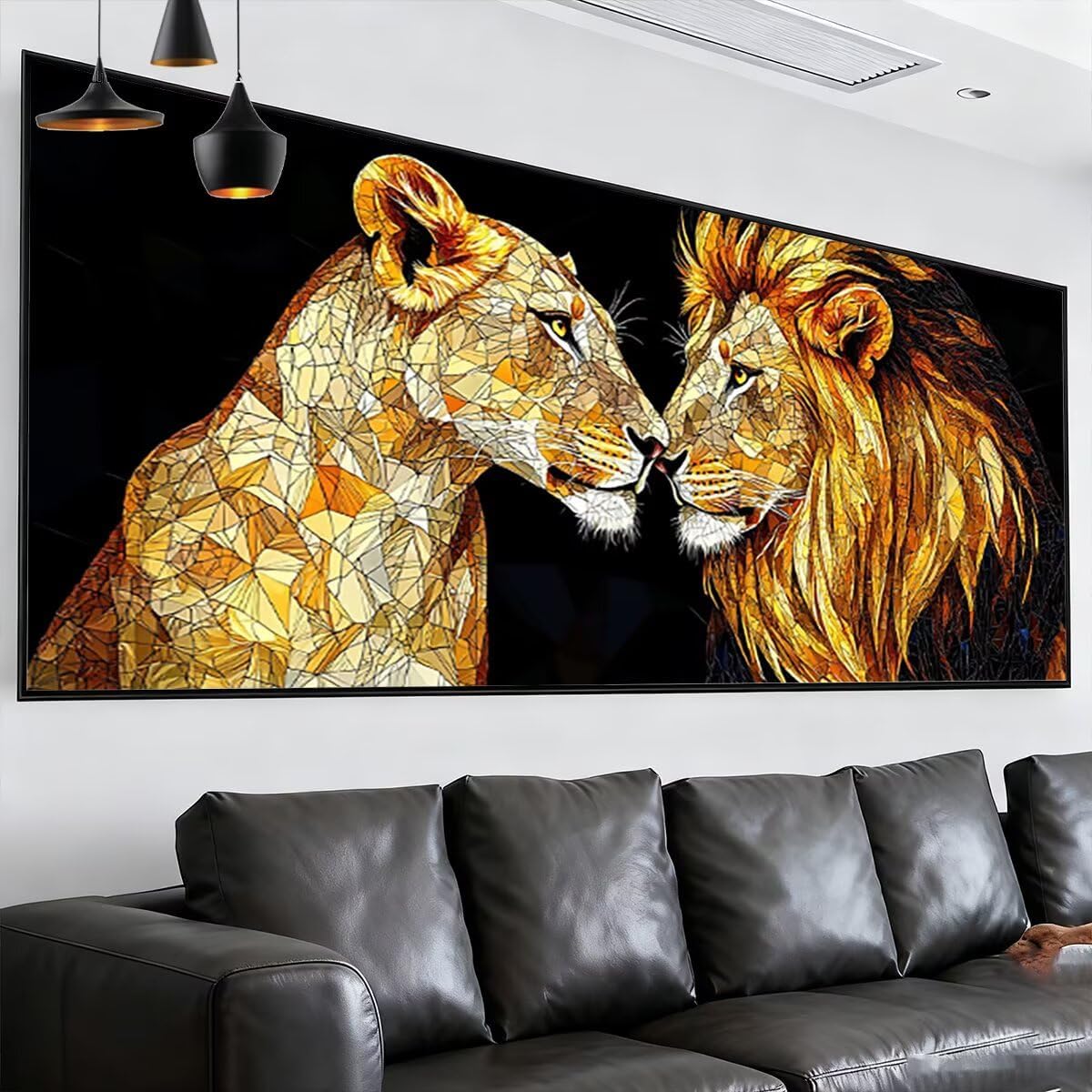 Diamond Painting Grandi Dimensioni 150x60cm, Animale Diamond Painting Kit Completo, Disegni con Perline da Attaccare Fai Da Te per Adulti, Pittura Diamante Kit per Decorazioni Casa (Leone) Motivo R-47