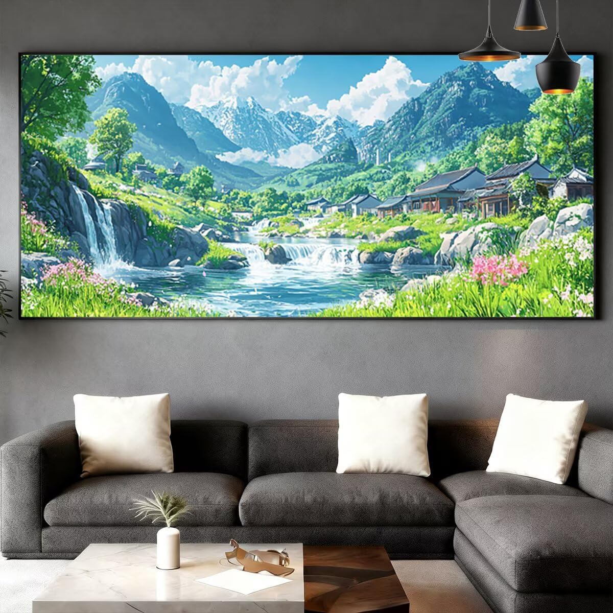 Diamond Painting Grandi Dimensioni 80x30cm, Paesaggio Diamond Painting Kit Completo, Disegni con Perline da Attaccare Fai Da Te per Adulti, Pittura Diamante Kit per Decorazioni Casa (Montagna) Q-69