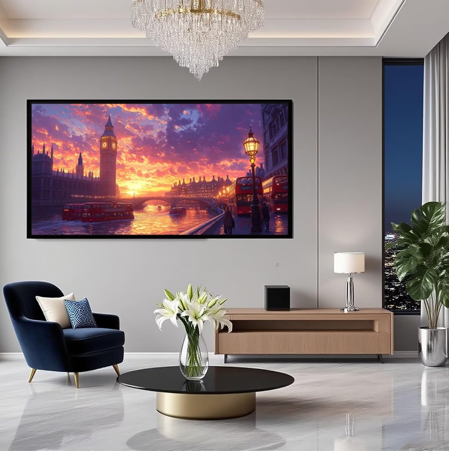Diamond Painting Grandi Dimensioni Città, Diamond Painting Kit Completo Vista notturna, Passatempo per Adulti 5D Pittura Diamante Quadri Con Perline, per la Decorazione Ambienti 160x80 cm c-7578