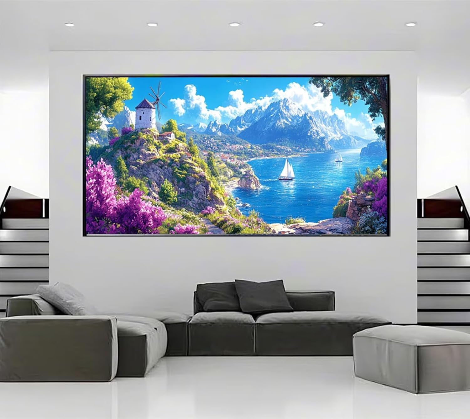 Diamond Painting Grandi Dimensioni Costiero, Diamond Painting Kit Completo Paesaggio, Passatempo per Adulti 5D Pittura Diamante Quadri Con Perline, Accessori Disegni Bambini per Decor 60x30 cm c-7372