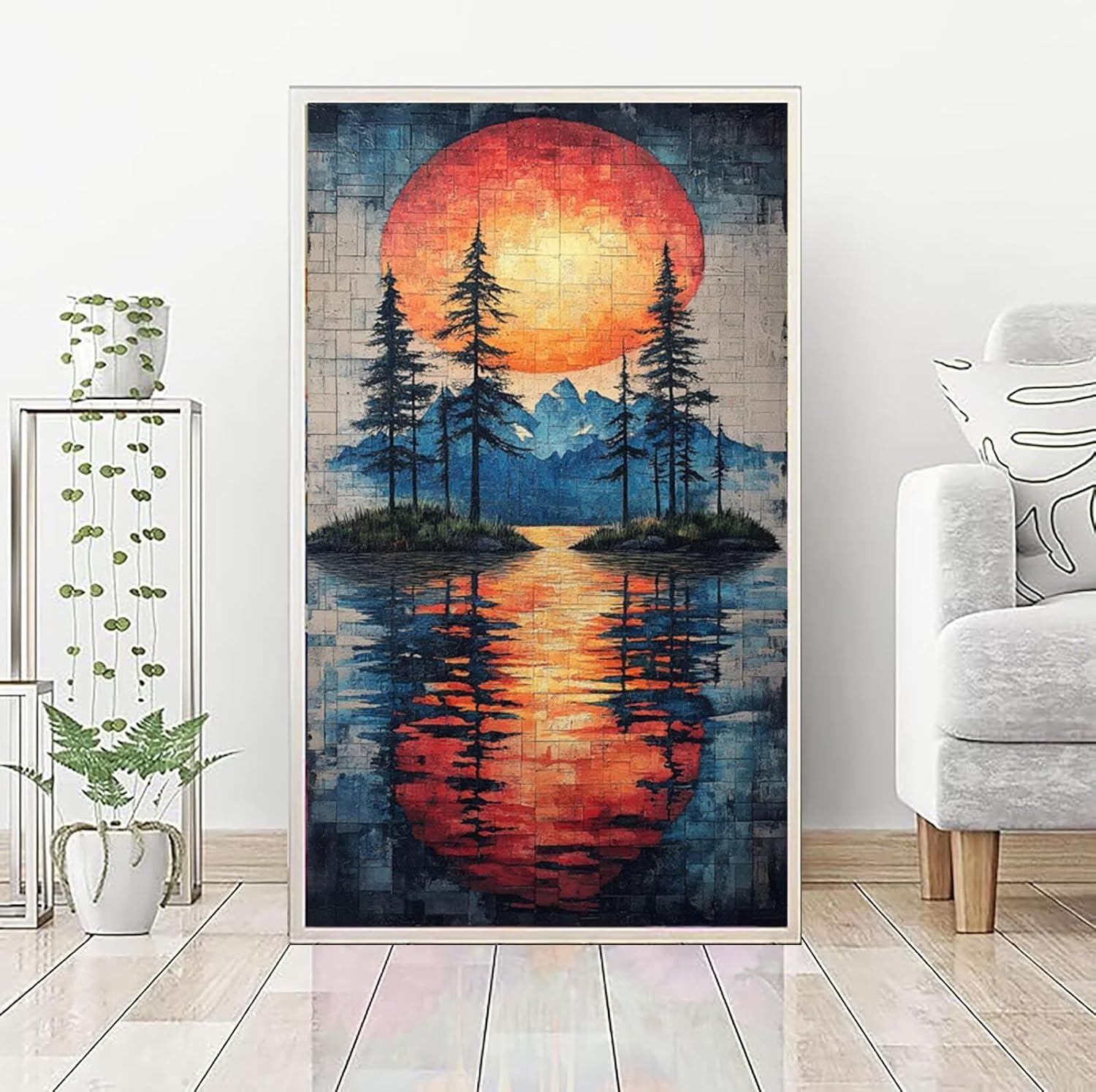 Diamond Painting Grandi Dimensioni Lago, Diamond Painting Kit Completo Albero, Passatempo per Adulti 5D Pittura Diamante Quadri Con Perline, Disegni Bambini per la Decorazione Ambienti 60x30 cm c-8712