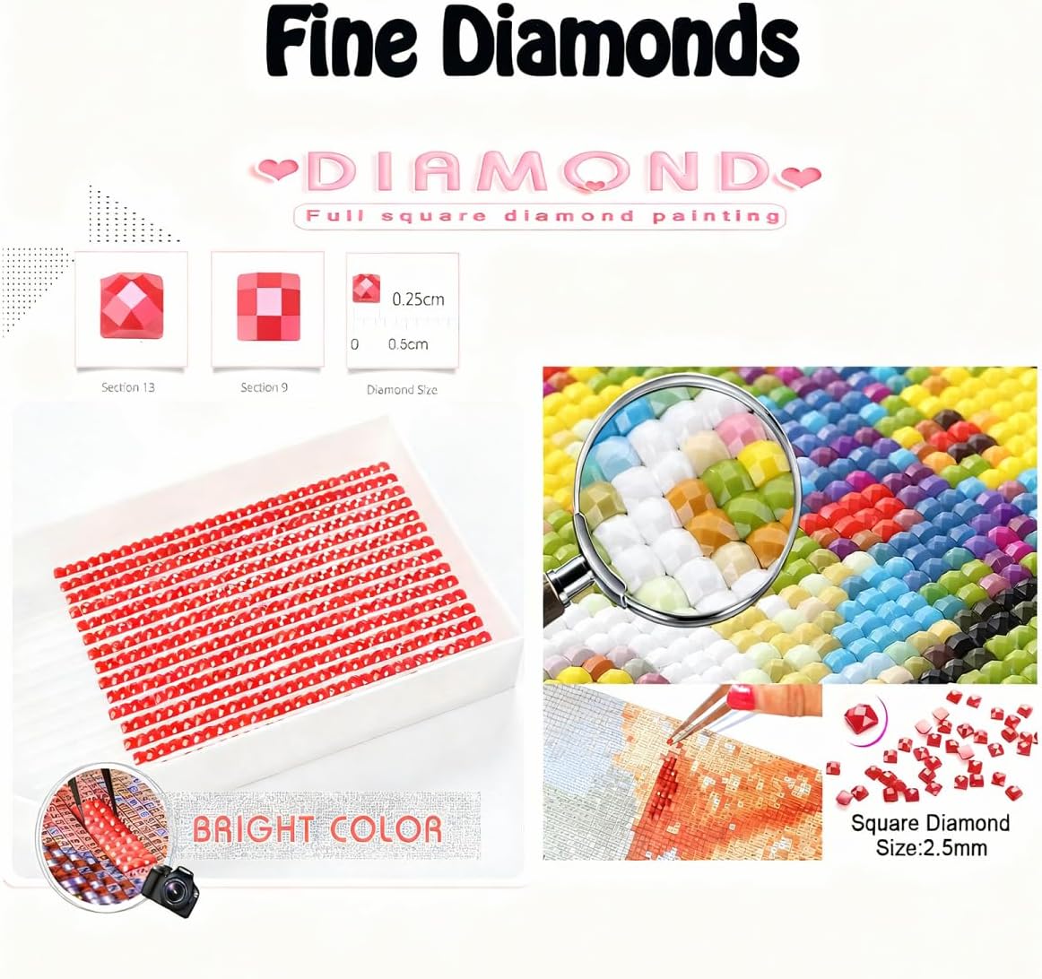 【PITTURA A DIAMANTE DI GRANDI DIMENSIONI E CONFEZIONE】La dimensione della pittura a diamante è 110x55cm. Include tela HD, perline di strass colorati, penna a punta diamantata, cera per pittura a diamante, sacchetti sigillati, vassoi per pittura a diamante. La pittura a diamante di grandi dimensioni viene fornita con diversi set di strumenti 【MATERIALI DI ALTA QUALITÀ】La tela per pittura a diamante è stampata ad alta risoluzione, è impermeabile e ha una consistenza liscia, i simboli delle lettere sono chiari e facili da capire. Il potente adesivo garantisce un'eccellente aderenza del diamante e uno speciale strato protettivo preserva l'opera per anni 【PITTURA A DIAMANTE FAI DA TE POPOLARE】Questo kit per pittura a diamante 5D. Le perline di diamante hanno molte sfaccettature, i diamanti scintillanti rendono l'intero dipinto più tridimensionale, vivido e magnifico. Realizzare una splendida opera d'arte è facile per chiunque 【AGGIUNGI PIÙ DIVERTIMENTO ALLA TUA VITA】Dipingendo, ti sembrerà che il tempo voli e ti immergerai nel mondo dell'arte dei diamanti. La pittura fai da te con diamanti può alleviare lo stress, regolare le emozioni, aumentare l'autostima e perseverare sviluppando la pazienza. Adatto ad anziani/principianti/adulti 【DECORAZIONE E REGALI PERFETTI】La pittura con diamanti è una popolare decorazione fai da te, adatta per decorare il soggiorno, l'ufficio, il negozio, la camera da letto, il bar o qualsiasi altro ambiente. Consigliamo vivamente di regalare dipinti con cristalli a familiari o amici. Adatto come regalo di compleanno, Pasqua, Ringraziamento, Natale, trasloco, Capodanno e altro ancora
