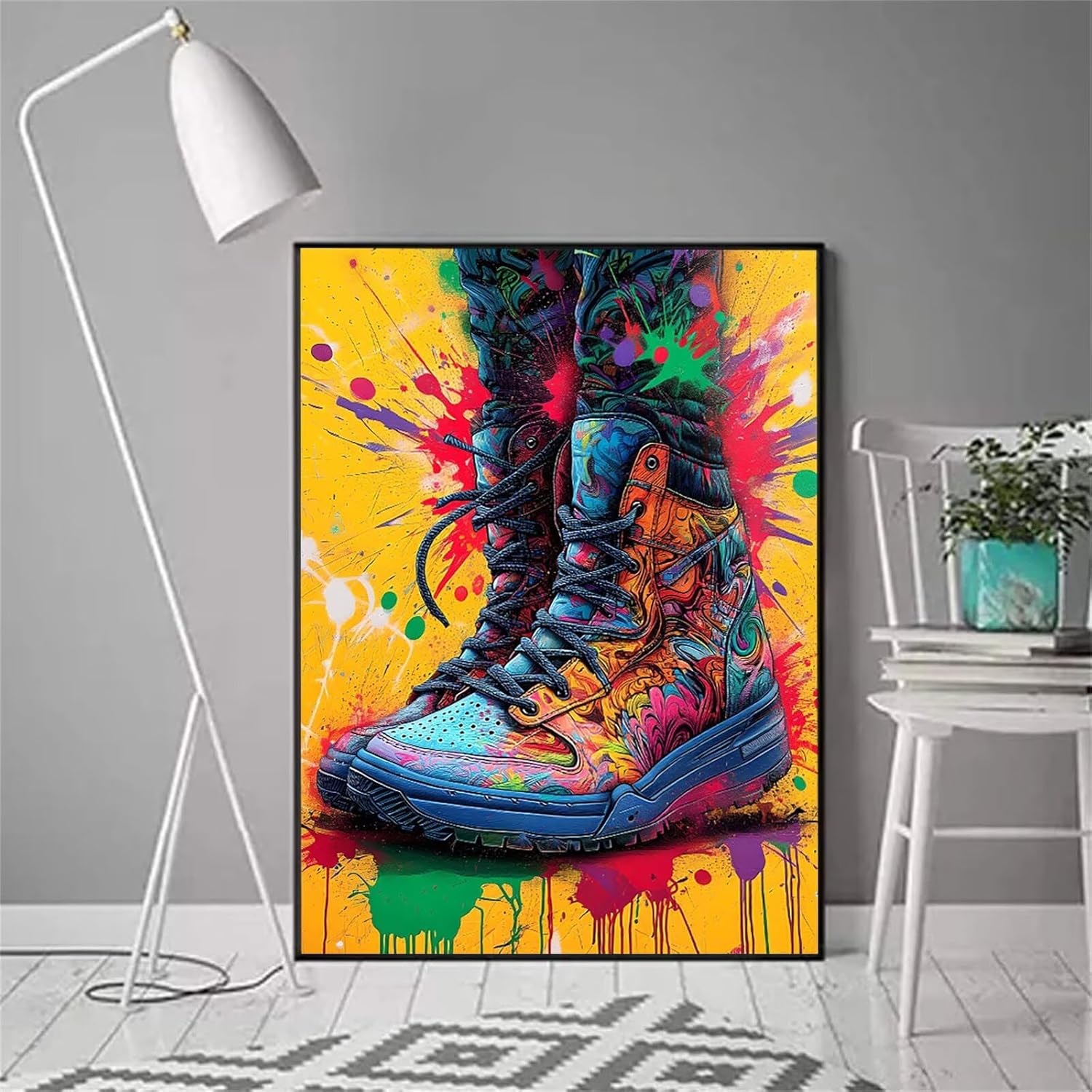 Diamond Painting Kit Completo, 5D Colore Diamond Painting Bambini, DIY Diamantini Crystal Art Scarpe Graffiti Quadri con Perline Passatempo per Adulti Pittura Diamante per Decorazione 70x100 cm H-7638