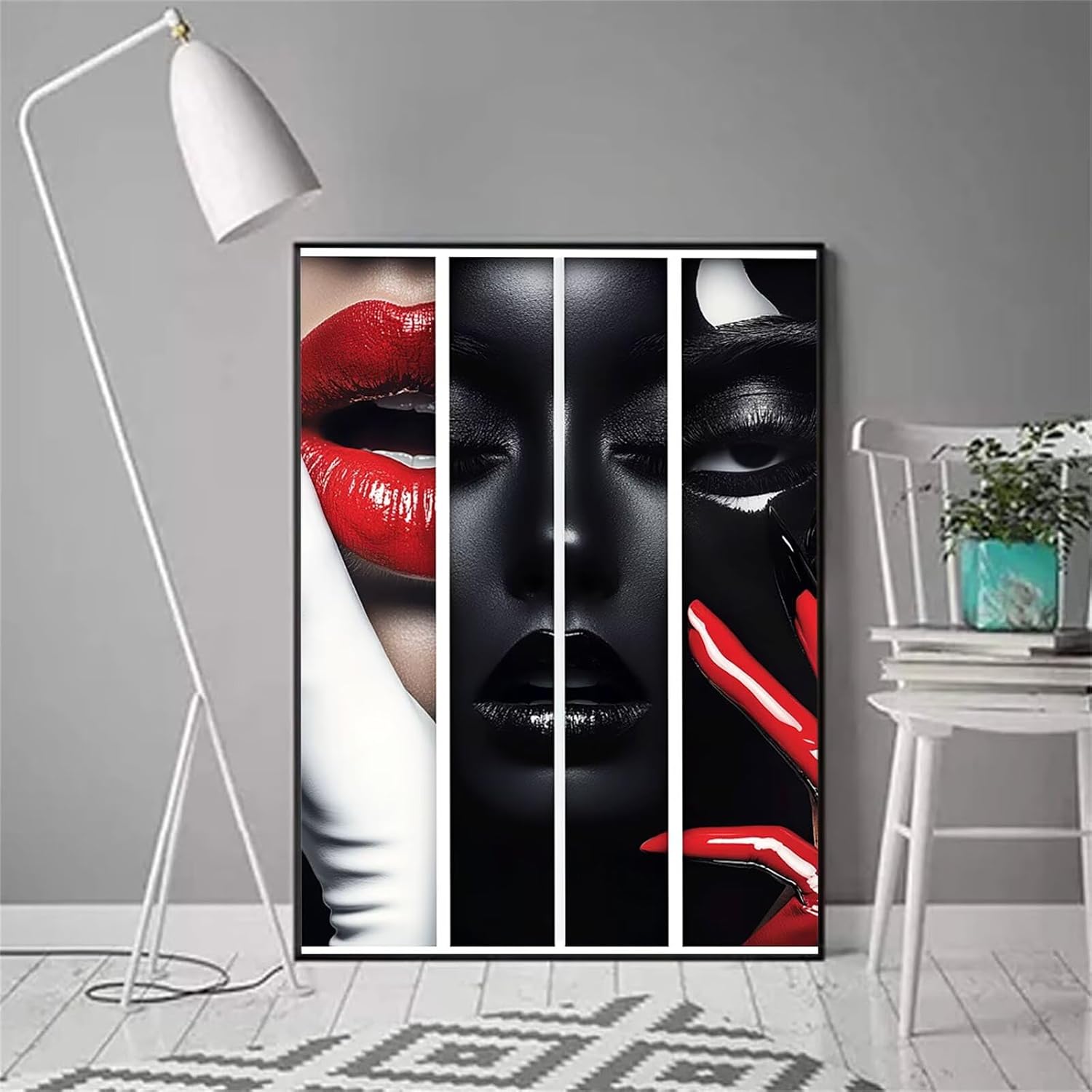 Diamond Painting Kit Completo, 5D Donna Diamond Painting Bambini, DIY Diamantini Crystal Art Labbra rosse Quadri con Perline Passatempo per Adulti Pittura Diamante per la Decorazione 45x60 cm H-4215