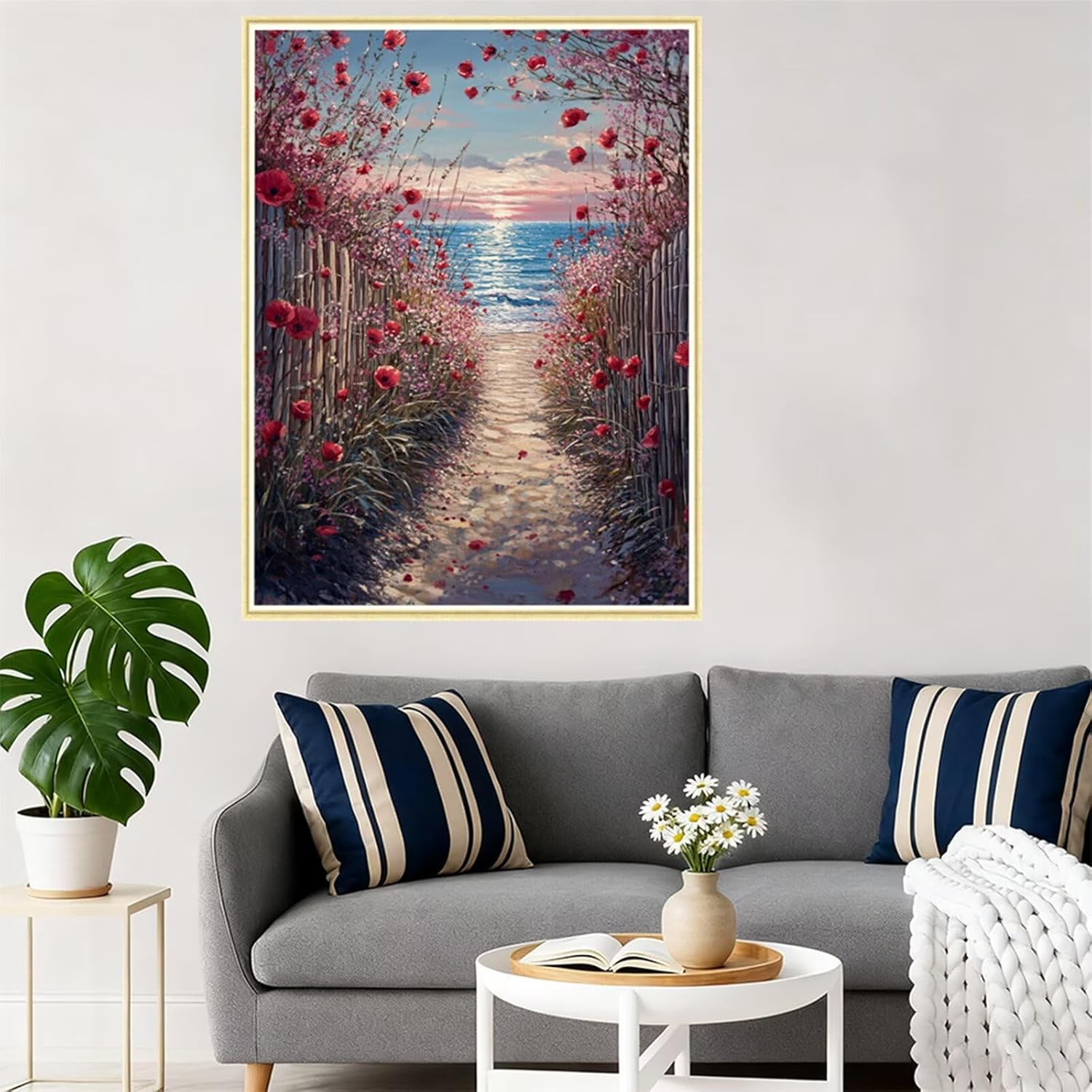 Diamond Painting Kit Completo Giardino Diamond Painting Mare, 5D Diamantini Crystal Art Bambini Pittura Diamante, Fai da Te Strass Ricamo a Punto Croce per Casa Decorazioni Parete 80x110 cm O4-645
