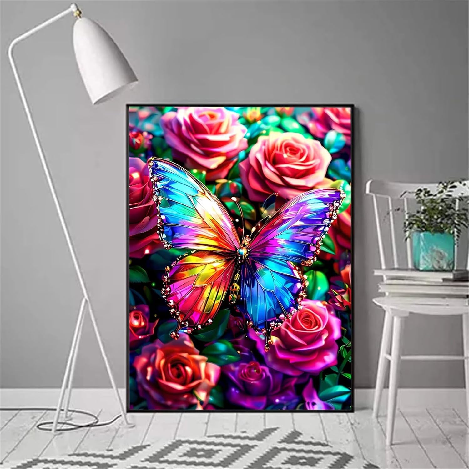Diamond Painting Kit Completo, Rosa Diamond Painting Bambini, Diamantini Crystal Art Farfalla Quadri con Perline Passatempo per Adulti Pittura Diamante per la Decorazione Domestica 45x60 cm H-3975
