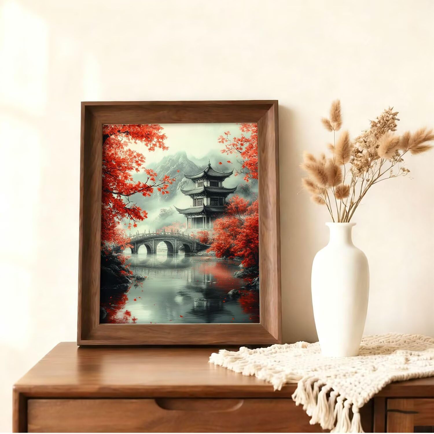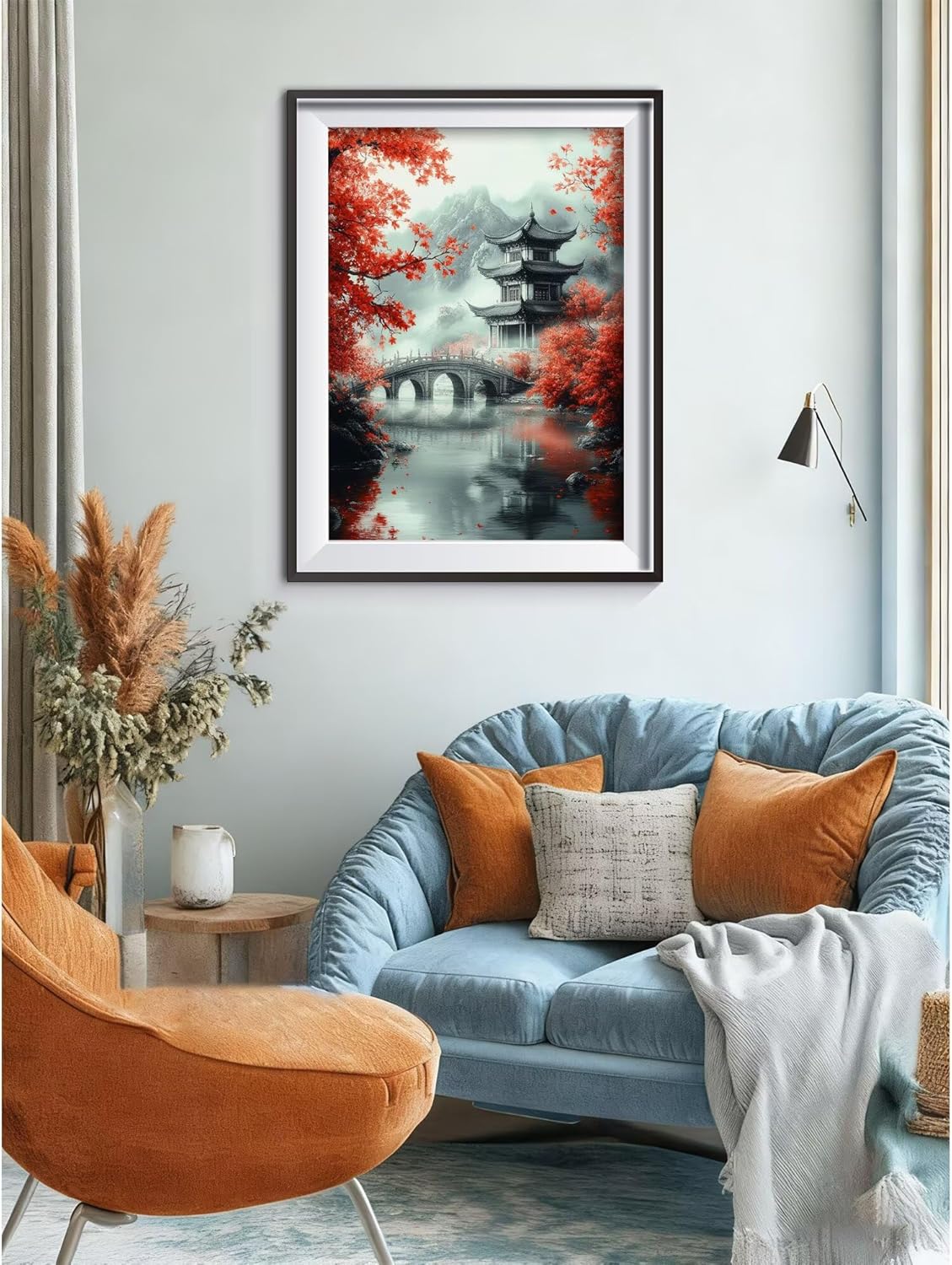 Diamond Painting Lago Torre 35x45cm 5D Diamond Painting Adulti Diamantini Crystal Art Creativi Kit, Ricamo Artigianale Kit, Autunnali Halloween Decorazioni Pareti Pittura, Regalo di Natale A-j-456