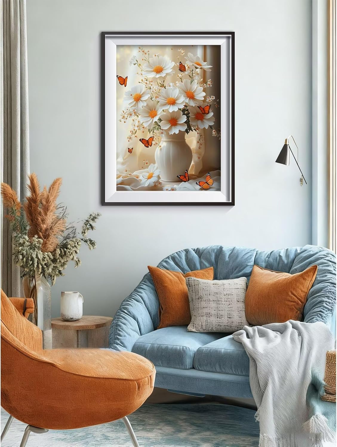 Diamond Painting Margherita Farfalla 90x120cm 5D Diamond Painting Adulti Diamantini Crystal Art Creativi Kit, Ricamo Artigianale Kit, Autunnali Halloween Decorazioni Pareti, Regalo di Natale A-j-6