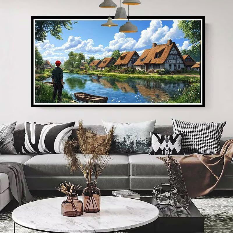 Diamond Painting Paesaggio Motivo,Piccola città Diamond Painting Adulti Grandi Dimensioni 40x80cm,Rotondi Diamantini Crystal Art Pittura con Kit Completo per Decorazioni Parete,Regalo Donna,Y272Z