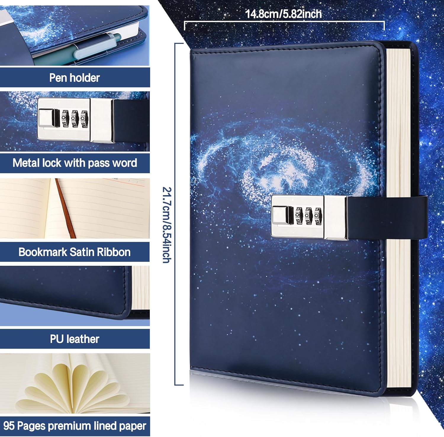Design con chiusura: il taccuino personale con lucchetto è il tuo spazio dove puoi archiviare tutti i tuoi ricordi felici. Il diario creativo da scrivere con un lucchetto che propone una combinazione di tre numeri da 0 a 9, la password iniziale è 0-0-0, puoi modificare la tua password seguendo le istruzioni sulla card. Segnalibri e posizione della penna: il diario con lucchetto per adulti ti offre un design accurato. Se cammini a metà strada, puoi contrassegnarlo con un segnalibro. Se hai bisogno di utilizzare un taccuino, non devi cercare separatamente la penna per la firma, che è già nel tuo taccuino, che è un design molto pratico e conveniente. Diario unico in pelle PU: la copertina è realizzata in pelle PU di alta qualità, è morbida al tatto e adatta per i viaggi e come diario personale. Design bello e unico, un must per un diario, un taccuino da viaggio. Pagine ricaricabili ad alta densità: il diario con lucchetto di alta qualità presenta 192 pagine (96 fogli) di carta a righe di alta qualità, spessa e tagliata uniformemente, che resiste alle immagini fantasma e al sanguinamento dell'inchiostro e cancella problemi di sfilacciamento e ombreggiatura. Nessuna candeggina e carta color crema priva di acidi possono proteggere efficacemente la vista. Con angolo arrotondato e tasca posteriore per un facile trasporto. Molteplici usi: questo diario con serratura da donna è un ottimo regalo per ogni occasione, come compleanni, lauree, vacanze speciali. Se desideri impostare la tua password, tieni premuto il pulsante da spostare a destra in base alla password originale di tre cifre, ruota i quadranti per impostare la nuova password di 3 cifre e rilascia il pulsante dopo aver impostato la nuova password.