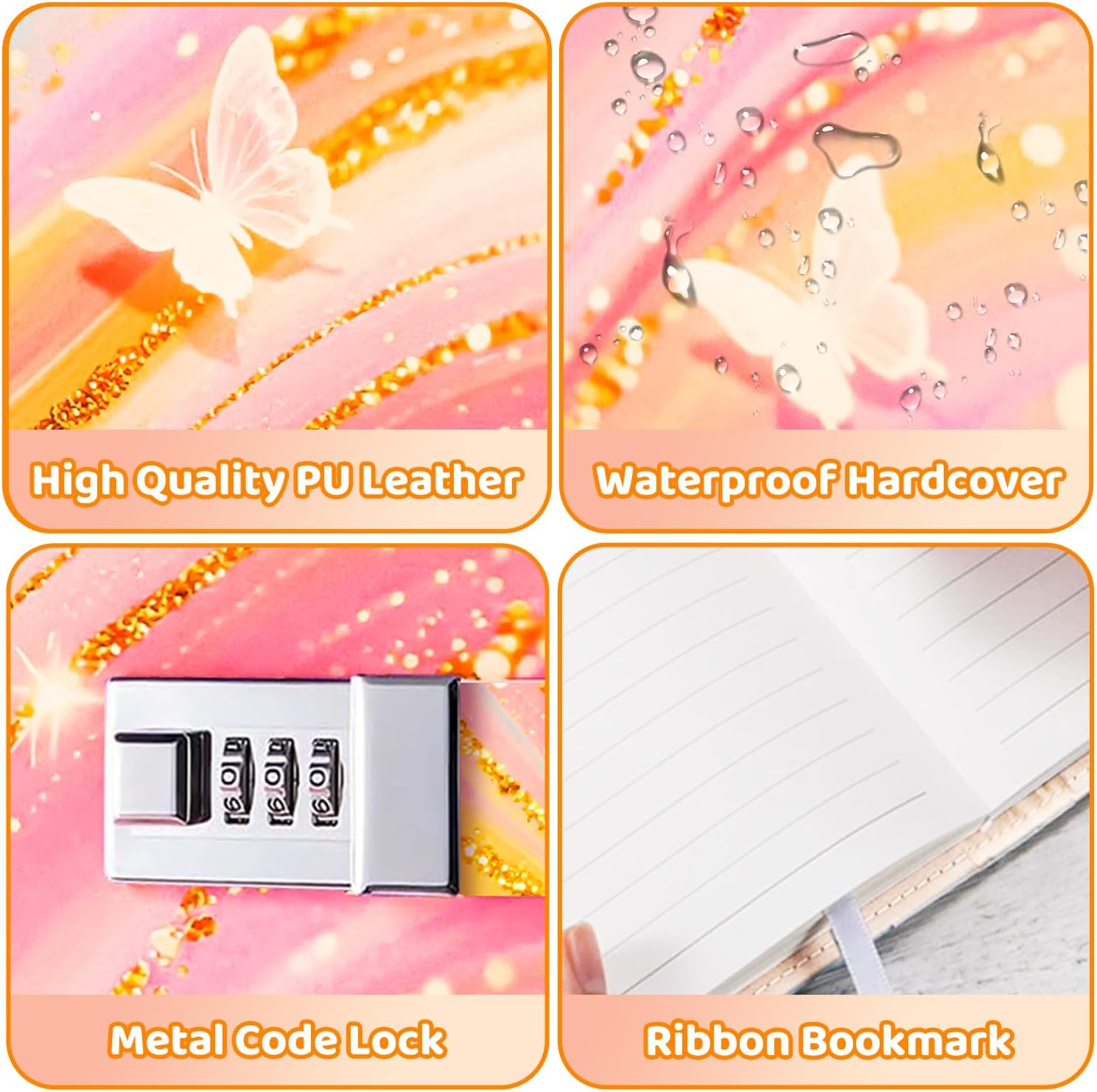Cosa ottieni: questo diario può essere utilizzato come diario, diario, quaderno di schizzi, ecc. Viene fornito con 1 adesivo divertente panda (500 fogli), 1 penna gel, che lo rende uno strumento pratico per chiunque voglia mantenere i propri pensieri organizzati. Dimensioni adatte alla maggior parte delle esigenze: il diario con lucchetto ha 90 fogli e 180 pagine, ricaricabili e spesse per impedire la penetrazione dell'inchiostro. Formato A5, 22 x 15 cm, perfetto come diario di scrittura, diario, agenda, libro dei ricordi generali, diario di viaggio, album fotografico, ecc. Diario con codice: questo quaderno creativo con serratura per ragazze protegge in modo sicuro i segreti e le idee di una ragazza. Nessuna chiave necessaria, combinazione di 3 cifre da 0 a 9 cifre, migliaia di combinazioni di password, ma solo una password corretta. Le ragazze possono tenere un diario e scrivere idee, scrivere, disegnare, fare schizzi e prendere appunti liberamente e senza preoccupazioni. Se non riesci ad aprire il blocco del codice o hai dimenticato la password, contattaci. Squisito diario in PU con farfalle: la copertina è realizzata in pelle PU testurizzata, che sembra fantastica per conquistare il favore delle ragazze ed è impermeabile, quindi il diario può essere conservato a lungo. Ha un aspetto vintage ed elegante ed è così morbido al tatto che potresti non volerlo mettere in mano o in tasca. Un regalo perfetto: il diario di carta a righe contiene una penna gratuita e viene fornito con un simpatico adesivo panda (500 fogli). Perfetto come regalo per il rientro a scuola, regalo per feste per bambini, regalo di compleanno, regalo di Natale, regalo di Capodanno, regalo di Pasqua, regalo di laurea, premi, ecc. È un regalo unico e inimitabile per figlie, figlie, nipoti, nipoti o amiche