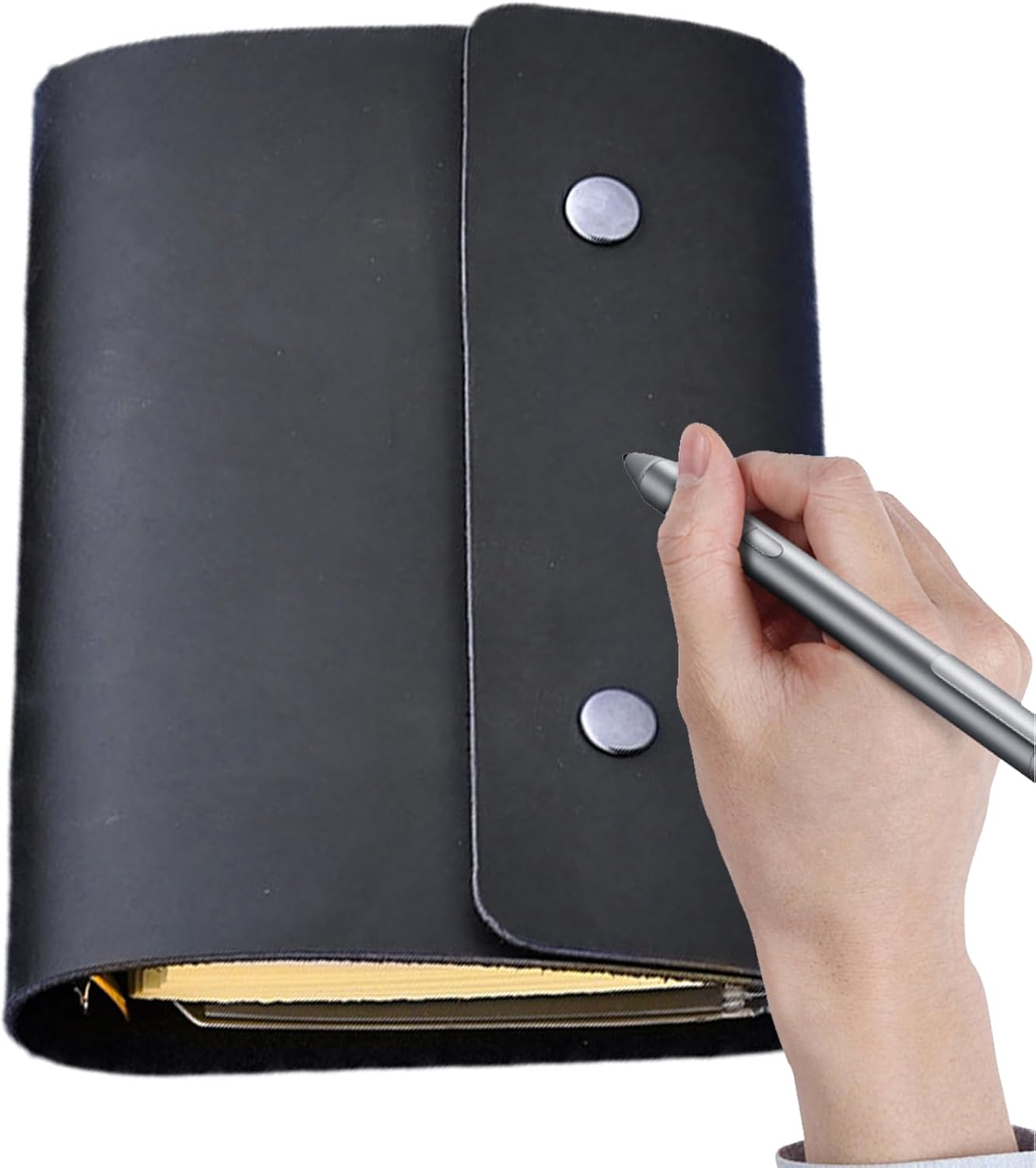Lavorazione artigianale: con una consistenza morbida e delicata e dettagli precisi cuciti a mano, questo diario in pelle emana un fascino duraturo. Mette in risalto l'individualità dell'utente e offre una sofisticata opzione per notebook per prendere appunti con stile e progetti creativi. Organizzazione efficiente delle note: include 100 pagine di ricarica A7 per un'organizzazione personalizzabile e una gestione ottimale delle note. La carta spessa e liscia impedisce la fuoriuscita dell'inchiostro, rendendo la scrittura un piacere. Perfetto per registrazioni quotidiane e documentazione strutturata. Pronto per riunioni di lavoro: il blocco note in pelle offre uno scomparto integrato per carte e ricevute, prevenendo la perdita di oggetti e rendendolo ideale anche per riunioni di lavoro con un coperchio antipolvere. Il design garantisce che tutte le tue cose importanti siano tenute al sicuro mentre puoi concentrarti sui tuoi compiti. Perfetto per viaggi d'affari o per l'uso quotidiano in ufficio. Conservazione portatile delle idee: grazie al suo formato mini A7 compatto, questo diario in pelle è progettato in modo ottimale per l'uso in viaggio. Si infila facilmente in borse o zaini e ti permette di documentare i tuoi pensieri sempre e ovunque. Sia nella vita di tutti i giorni che in viaggio, questo diario è il compagno ideale per momenti creativi e idee spontanee. Usalo come uno strumento utile per catturare le tue idee migliori. Design pratico ed elegante: con un design pratico ed elegante, questo notebook presenta uno stile minimalista che è allo stesso tempo elegante e robusto, perfetto per riunioni e attività lavorative quotidiane