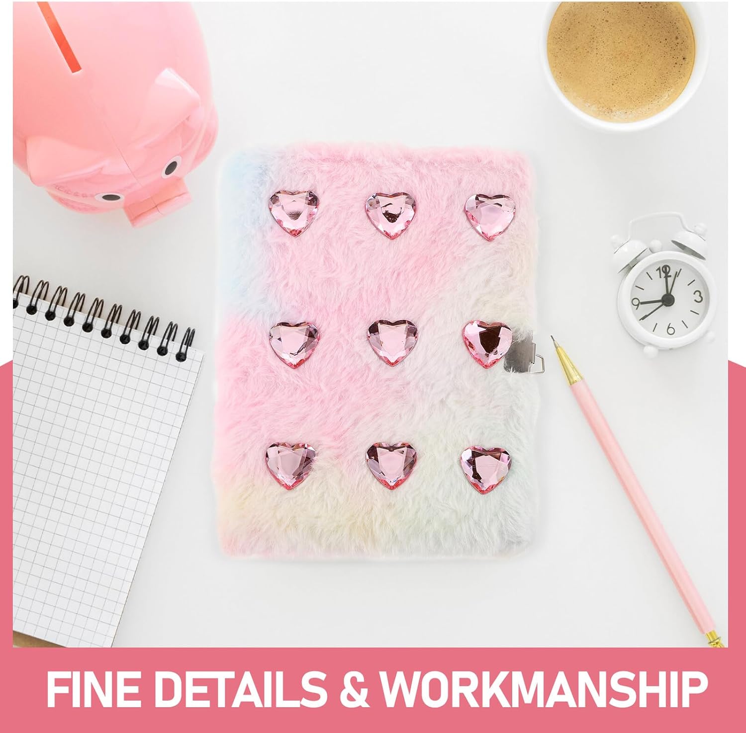 Sicuro e protetto: il design con serratura di questo diario garantisce che i tuoi pensieri e segreti personali rimangano al sicuro. taccuino in peluche, diario con serratura Design sfumato accattivante: il design sfumato a forma di cuore sulla copertina aggiunge un elemento unico e visivamente accattivante a questo diario, taccuino per ragazze e taccuino per studenti Decorazione lussuosa: questo diario aggiunge un tocco di lusso ed eleganza alla tua esperienza quotidiana di diario, un bellissimo taccuino, un soffice diario Funzione bloccabile: sicuro con il design bloccabile di questo diario, assicurando che la tua privacy sia sempre protetta, taccuino per ragazze, adorabile taccuino Diamanti scintillanti: questo diario aggiunge un tocco di glamour e lusso alla tua routine quotidiana. Diario multifunzionale, taccuino con serratura