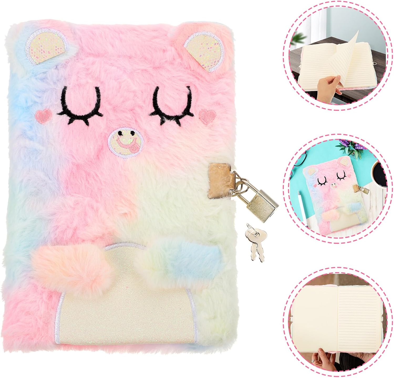 Notebook con lucchetto: ti aiuta a pianificare, stabilire le priorità, personalizzare e organizzare il tuo lavoro. soffice, flessibile e confortevole, ideale per l'inverno Diario con lucchetto soffice - è piccolo, leggero, poco ingombrante e facile da trasportare, libro per bambini con lucchetto Diario con lucchetto - un tenero peluche a forma di cartone animato, un fantastico regalo per amici, bambine e altri Taccuino coccoloso - carta interna liscia, puoi scrivere la tua esperienza unica su questo taccuino, diario con lucchetto Libro soffice - il design creativo rende i bambini un'esperienza meravigliosa e buon umore, diari incantevoli