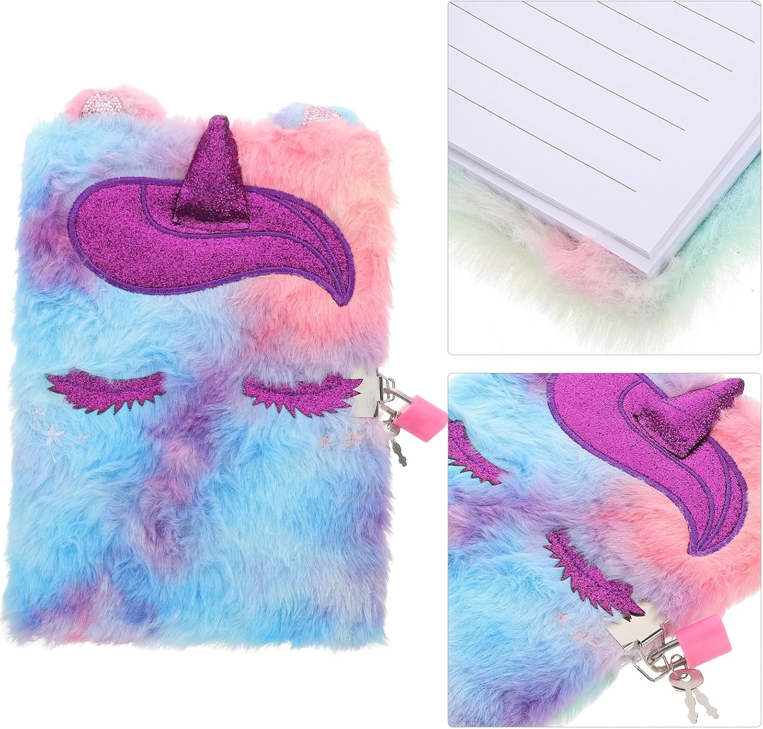 Adorabile opera d'arte di unicorno: l'incantevole opera d'arte di unicorno è progettata per stimolare l'immaginazione dei bambini e rendere la scrittura un'attività divertente, diario di peluche, diario con serratura Esterno in morbido peluche: l'esterno in morbido peluche è confortevole e confortevole, rendendolo un piacere da tenere e utilizzare. Diario per bambini con serratura, diario segreto per ragazze Adorabile design dell'unicorno: l'incantevole design dell'unicorno attirerà e delizierà sicuramente, rendendo la scrittura un'attività divertente. taccuino unicorno per , soffice lucchetto per taccuino Regalo ideale per: Questo taccuino è ideale come regalo, aiuta a rafforzare i legami affettivi e offre ai bambini un luogo speciale in cui esprimersi. taccuino soffice e chiudibile a chiave, diario in peluche con funzione di blocco sicuro: dotato di un blocco sicuro, questo diario garantisce che i tuoi pensieri e segreti personali siano ben protetti. diario di peluche, diario segreto dell'unicorno