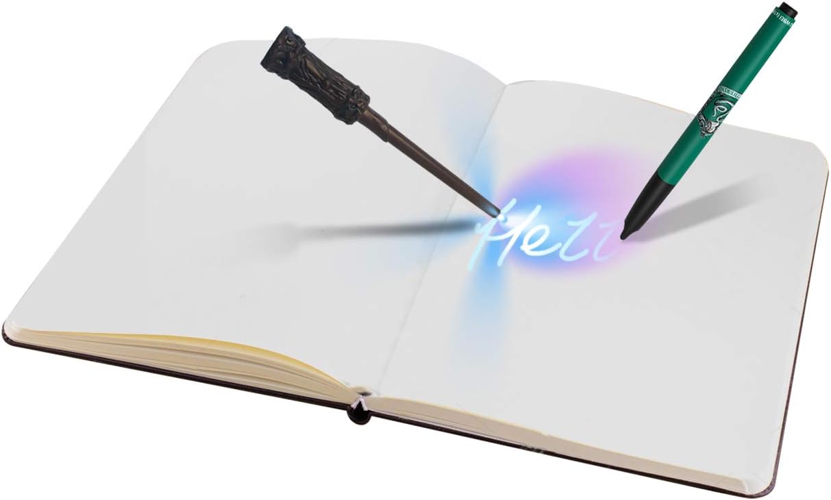 Taccuino Harry Potter con penna magica Carattere visibile attraverso la bacchetta magica con luce UV (batterie a bottone incluse) Il diario viene fornito con bacchetta magica e penna magica Mantieni i tuoi segreti al sicuro con questo taccuino magico Formato A5: adatto a bambini dai 3 anni in su