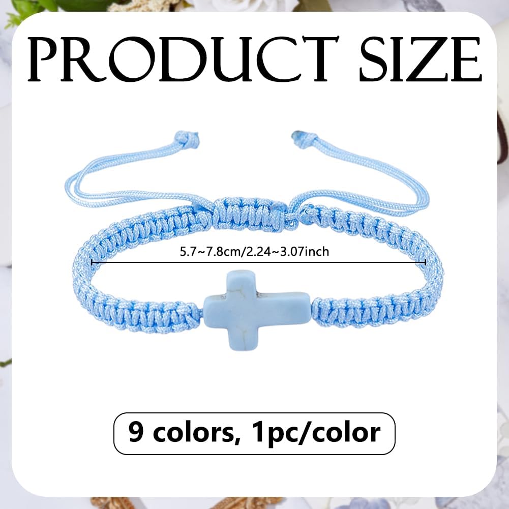 DICOSMETIC 9 braccialetti intrecciati con croce cristiana intrecciata, regolabile, con croce della fortuna, amicizia cristiana, coppia di bracciali intrecciati regolabili con croci turchesi, per donne e uomini Specifiche: Materiale: poliestere. Colore: colori misti Genere: unisex. Dimensioni: circa 5,7 ~ 7,8 cm diametro interno, croce: 16 x 14 x 4 mm, 9 colori, 1 pezzo per colore, 9 pezzi per set. Nota: Si prega di notare una leggera differenza di dimensione dovuta alla misurazione manuale. Si prega di notare che lievi differenze di colore dovute alle diverse impostazioni dello schermo.