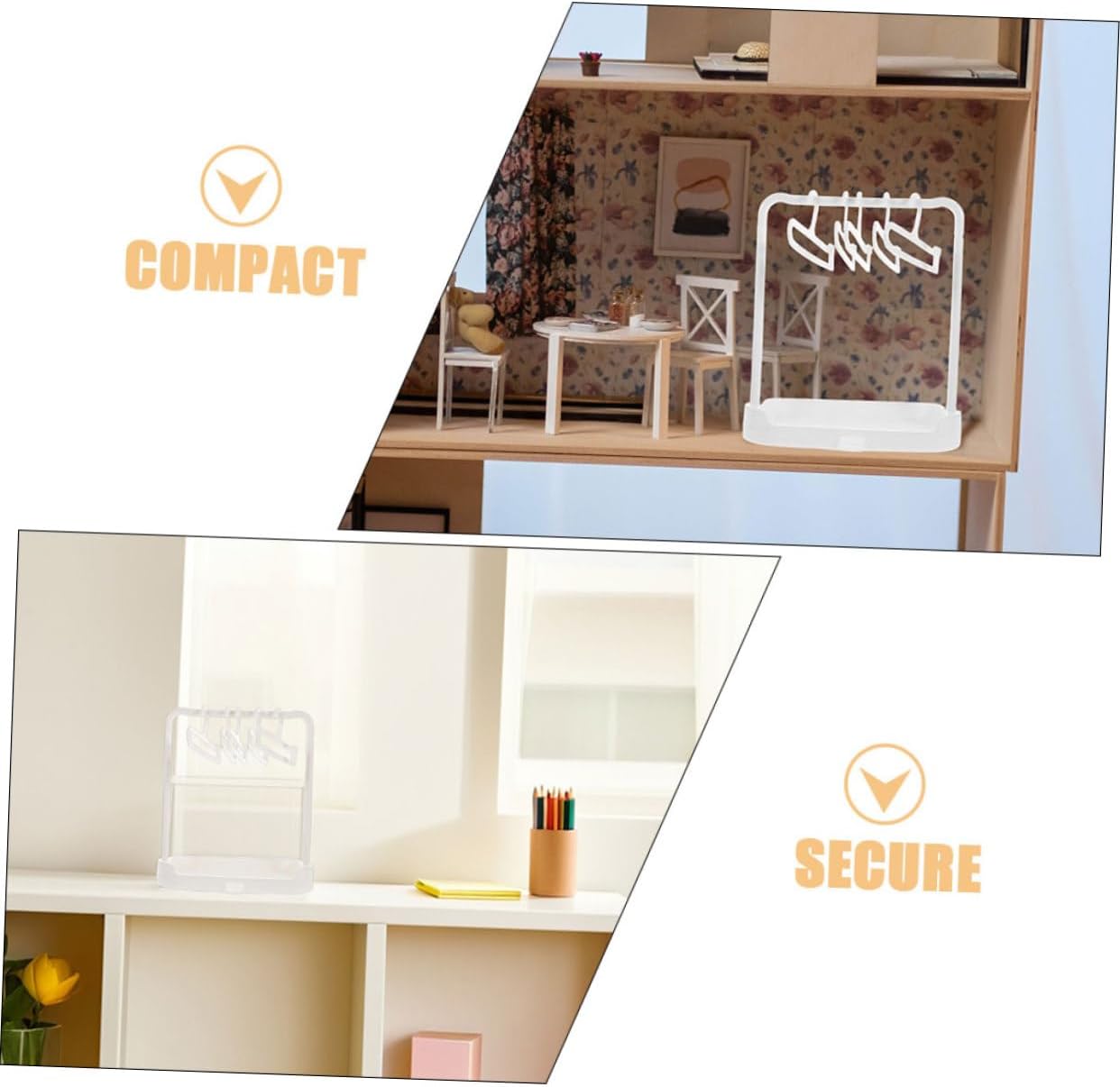 Supporto stabile: fornisce un supporto stabile per i vestiti delle bambole, impedisce che perdano la forma e li mantiene in ordine, scaffale portaoggetti, robusto appendiabiti Risparmio di spazio: progettato per massimizzare l'efficienza dello spazio, ideale per asciugare piccoli indumenti e vestiti per bambole, mini grucce per bambole, accessori per bambole Uso efficiente dello spazio: ottimizza lo spazio fungendo da strumento di asciugatura per piccoli oggetti e vestiti per bambole, organizzazione della lavanderia e appendiabiti per bambole Spazio massimizzato: progettato per utilizzare lo spazio in modo efficiente, ideale per asciugare piccoli oggetti e vestiti per bambole, appendiabiti portatile, appendiabiti Uso: per sia l'organizzazione domestica che l'esposizione nei negozi di giocattoli, offre grande comodità per l'uso quotidiano, grucce per guardaroba per bambole, appendiabiti