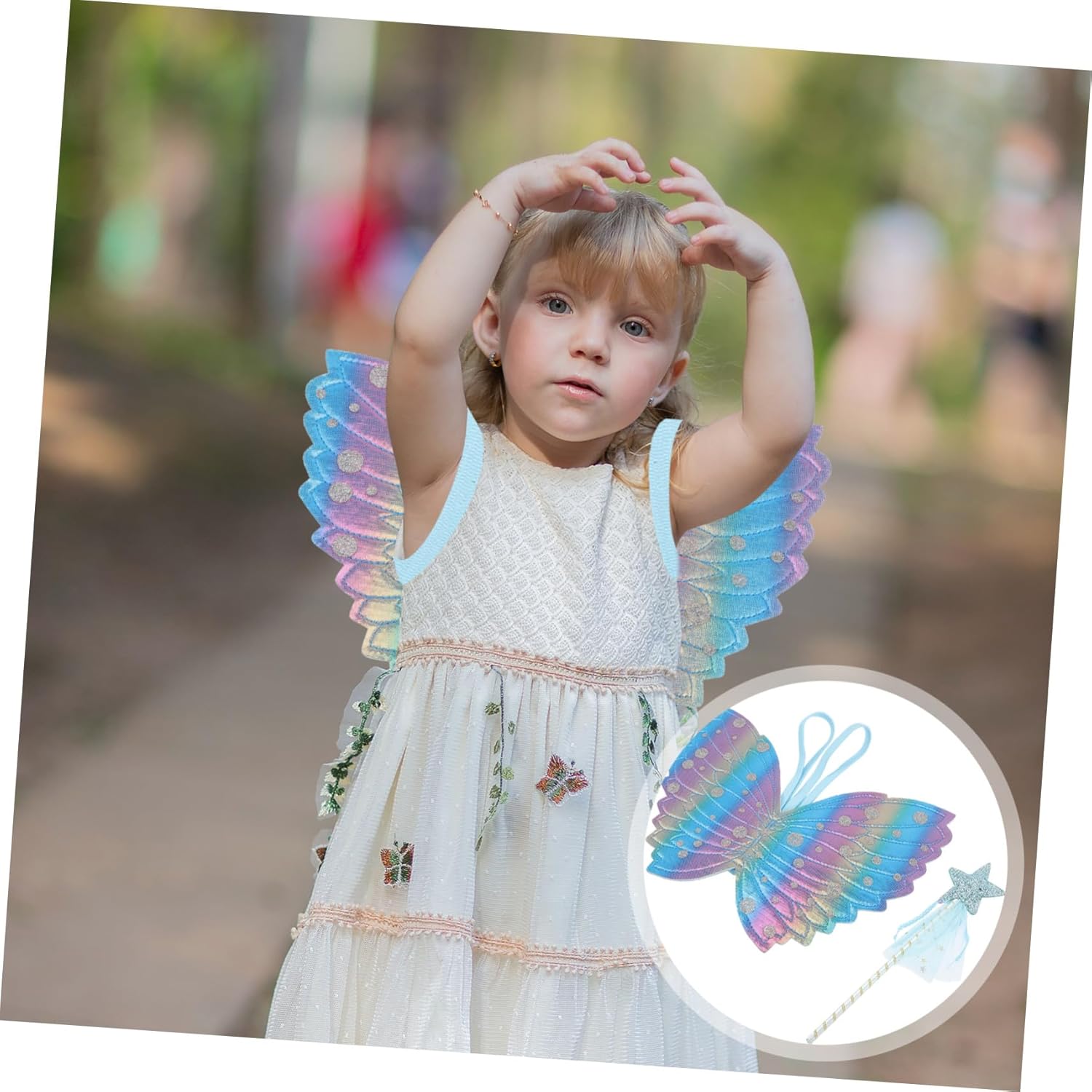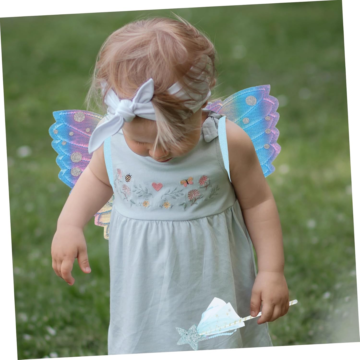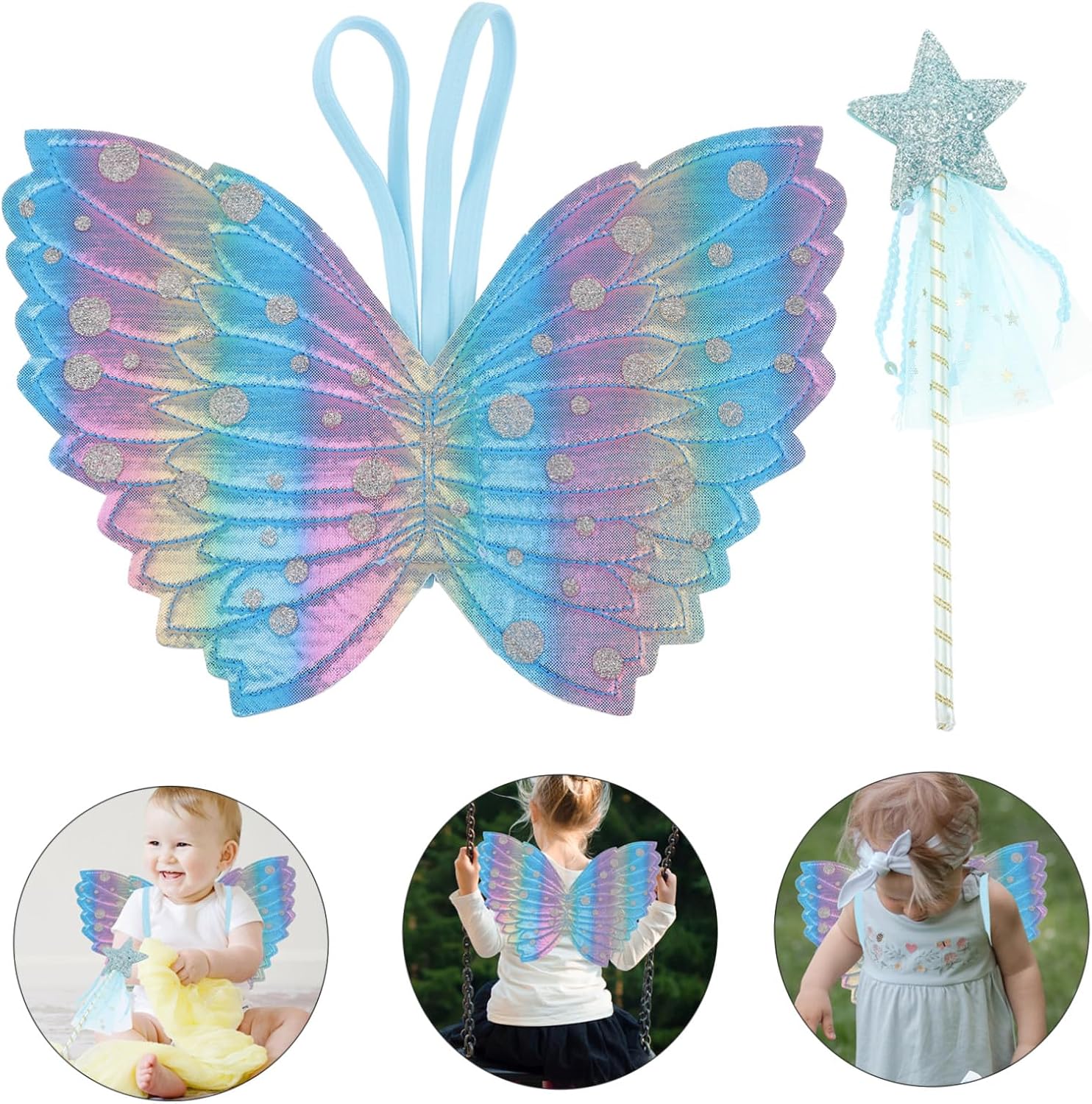 Bacchetta magica luminosa per feste: questa bellissima bacchetta magica può suscitare l'amore dei bambini, è l'amore per, una decorazione di compleanno Decorazioni di compleanno per bambine: puoi usarla molto facilmente, molto comoda e con bacchette magiche e bacchette magiche come oggetti di scena Bacchette per feste: ideali per vestire la tua bambina per feste di compleanno, spettacoli teatrali e altre occasioni. Perfetto anche per apparire come una fata alle feste o ad altre festività, decorazioni di compleanno per ragazze Accessori per bacchette fata: il design creativo è carino e attraente, lo adorerà moltissimo, decorazioni per feste per bambine, ali giocattolo per bambini: sensazione di mano confortevole e consistenza fine, l'ala non farà male né graffierà la pelle, sicura e affidabile, bacchetta da festa