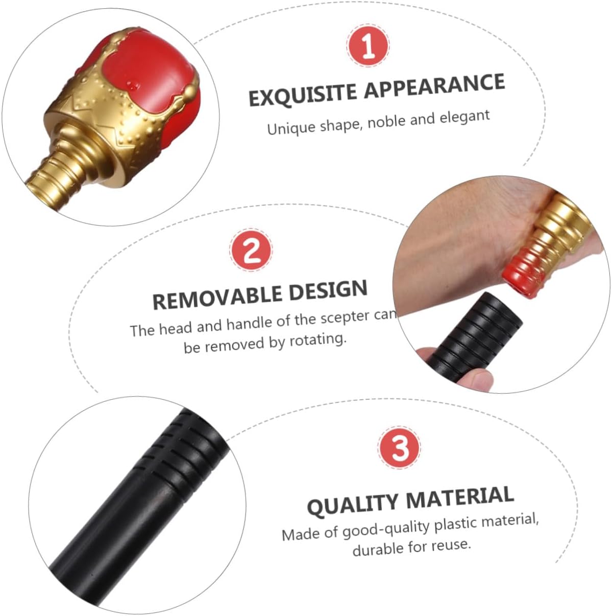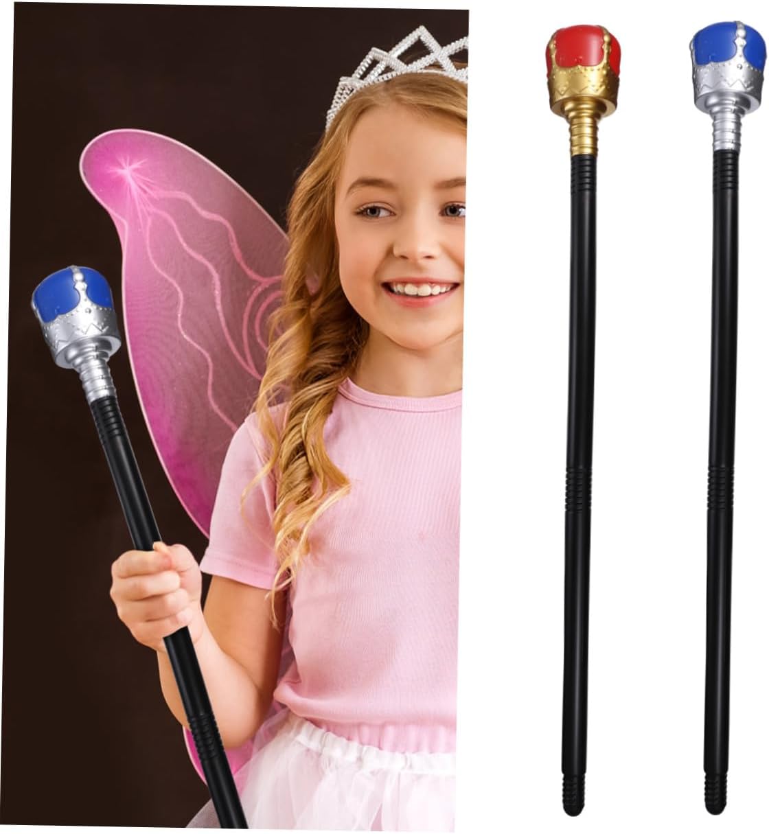 Bacchetta della regina: è molto adatta per Halloween, compleanni, feste per bambini o spettacoli teatrali. Bacchetta di plastica Bacchetta cosplay: realizzata in plastica, durevole per il riutilizzo e plastica Realizzata in plastica, resistente e decorativa, accessorio per costume cosplay Con testa rotonda: taglia unica, adatta alla maggior parte degli adulti, adolescenti e alcuni più anziani, divertente scettro del re: è divertente per Halloween, ti piacerà, oggetto cosplay