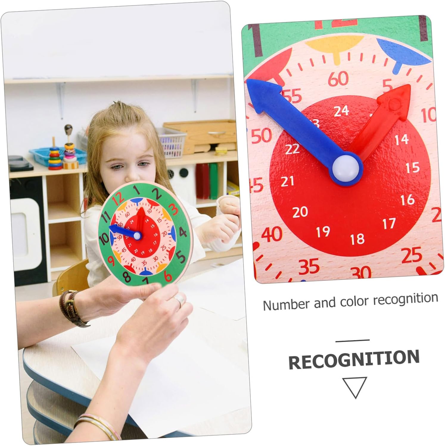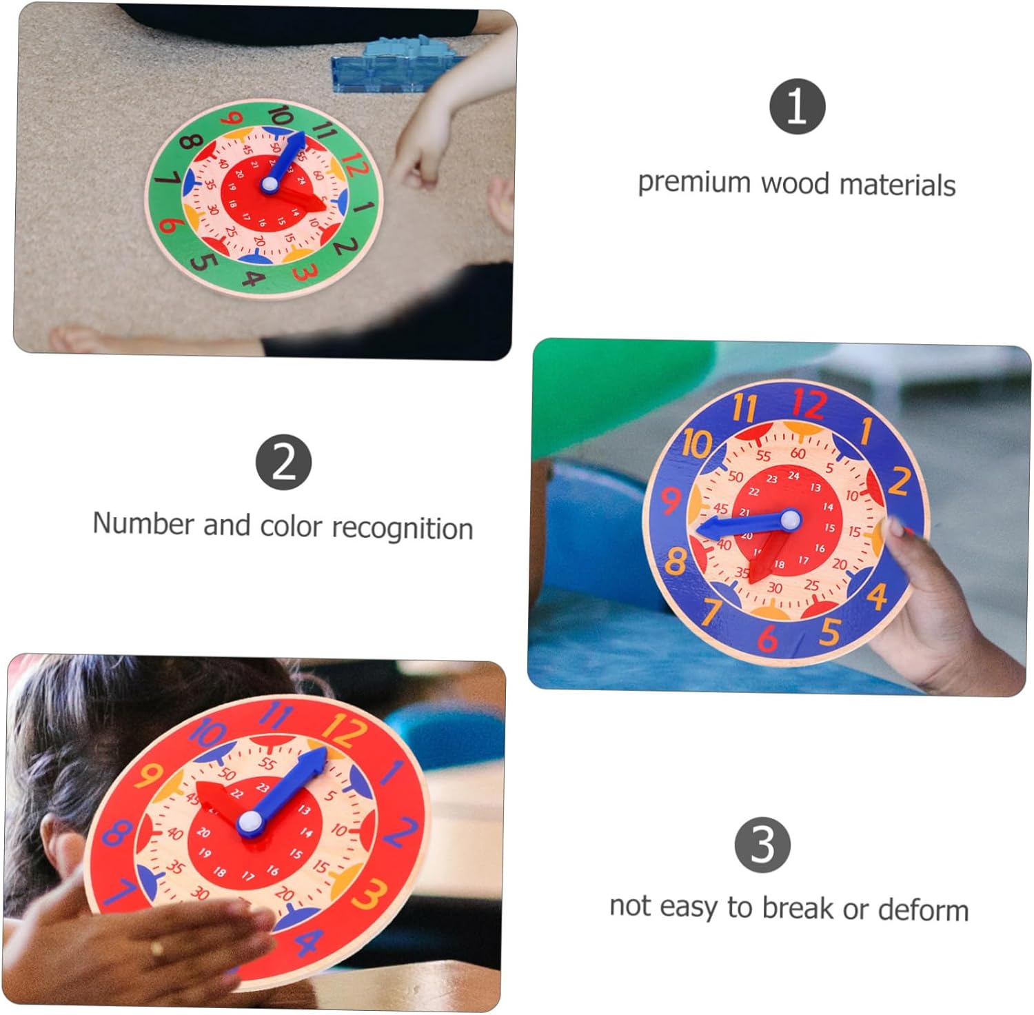 Orologio giocattolo per l'apprendimento del tempo: non solo insegna ai bambini a imparare, ma promuove anche l'importanza del tempo fin dalla giovane età, modello di orologio per bambini Apprendimento con l'orologio per bambini: ampia gamma di applicazioni, può essere utilizzato come strumento didattico, casa, decorazione per feste o come giocattolo per bambini per soddisfare le tue esigenze, orologio giocattolo per bambini Giocattolo per imparare il tempo: design dai colori vivaci e aspetto visivamente accattivante, bello e molto attraente per i giocattoli per bambini Orologio giocattolo didattico per bambini: questo giocattolo in legno è utile per interagire con la famiglia membri e può insegnare ai bambini di più sul tempo, giocattoli di riconoscimento del calendario di Clockwork Toys: riconoscimento di numeri e colori. Questo orologio giocattolo può aiutare i bambini a conoscere i diversi colori. -giocattoli di riconoscimento dei numeri