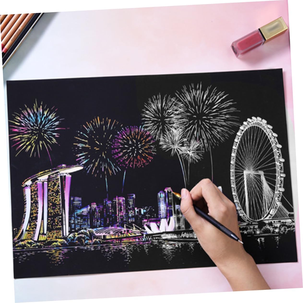 Creazione: basta grattare le linee grigie con uno speciale pennarello e verrà creata una bellissima immagine, disegno da grattare fatto a mano per adulti - disegno da grattare di sicurezza per la notte, attraente e sognante, disegno da grattare fatto a mano - puoi regalarlo ai tuoi amici o appenderlo come decorazione nella tua stanza. disegno da grattare fatto a mano Accessori fatti a mano: bellissimo modello, vivido e realistico, disegno da grattare fatto a mano Strumento di decompressione per adulti: offre a ragazzi e ragazze divertimento mentre scarabocchia e insegna ai bambini a scrivere e disegnare. disegni da grattare fatti a mano