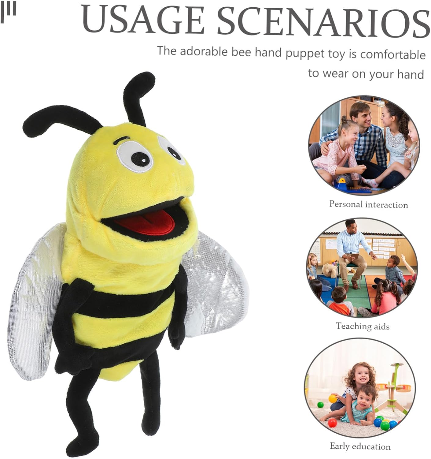 Marionette per famiglie con storie: perfette per o compleanno, possono anche essere usate come educazione precoce, marionette da dito con animali dei cartoni animati Marionette creative: con questa marionetta a forma di ape, puoi raccontare storie ai tuoi bambini, la favola della buonanotte sarà più interessante, burattini a mano di famiglia Gioco di ruolo con marionette a mano: giocattoli di marionette a mano dei cartoni animati, puoi quando lo porti in mano, che è un supporto necessario per la narrazione, burattini per bambini Apprendimento delle marionette per: lascia che racconti storie e con lui e regalagli una bella favola della buonanotte, peluche interattivo con marionette a mano bambola: realizzata in materiale sicuro e delicato, la marionetta a forma di ape è sicura, resistente e può essere utilizzata più volte, graziosa marionetta in tessuto