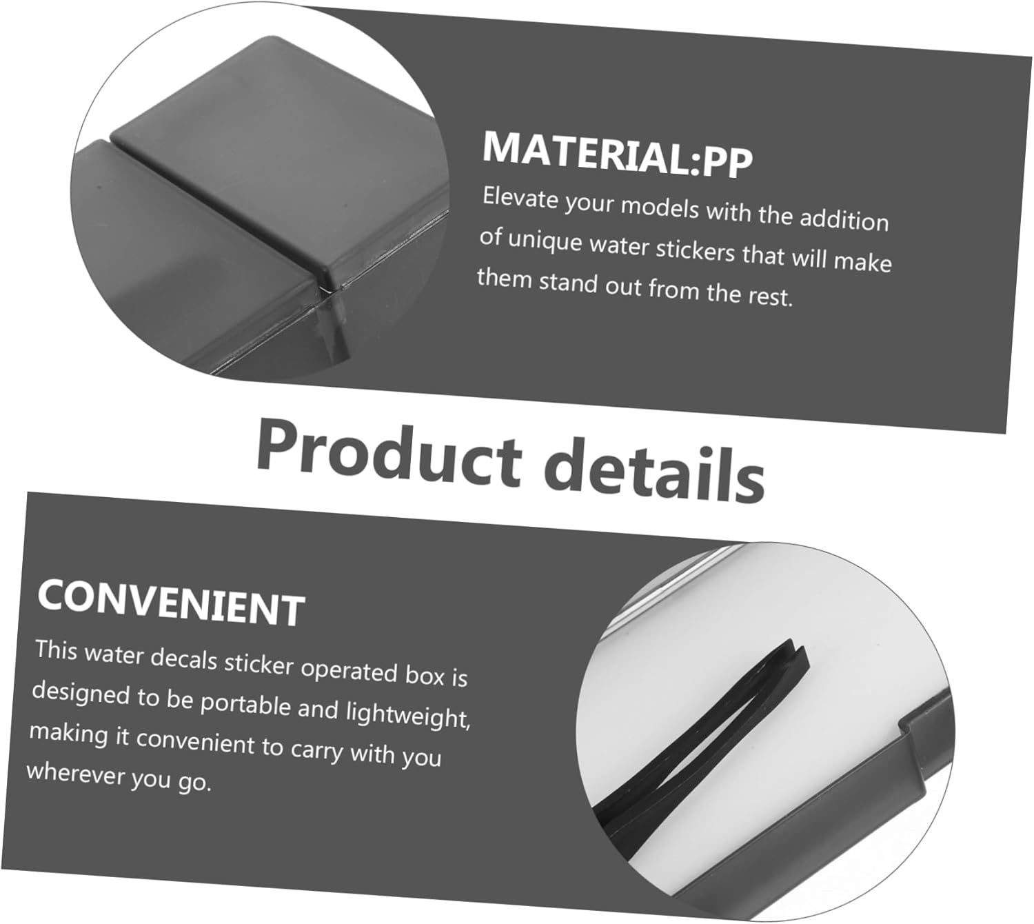 Kit di decalcomanie ad acqua: realizza i tuoi modelli con colori vivaci e accattivanti, aggiungendo un tocco di stile alle tue creazioni, custodia multifunzione per adesivi ad acqua Decalcomanie per scivoli d'acqua: migliora i tuoi modelli con l'aggiunta di adesivi per acqua unici che li renderanno modelli con decalcomanie per acqua Strumento per adesivi ad acqua: questa scatola per adesivi ad acqua è progettata per essere portatile e leggera, rendendola comoda da portare con te ovunque tu vada, vassoio per adesivi ad acqua Custodia per decalcomanie ad acqua: la scatola idratante inclusa in questo set assicura che l'applicazione degli adesivi ad acqua sia e facile, con conseguente finitura impeccabile, strumento per decalcomanie scorrevoli ad acqua Decalcomania ad acqua: immergi i tuoi adesivi ad acqua comodamente con la nostra comoda e pratica scatola per l'ammollo degli adesivi ad acqua, custodia multifunzione per adesivi ad acqua