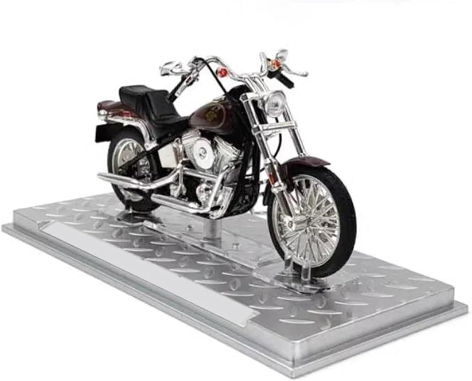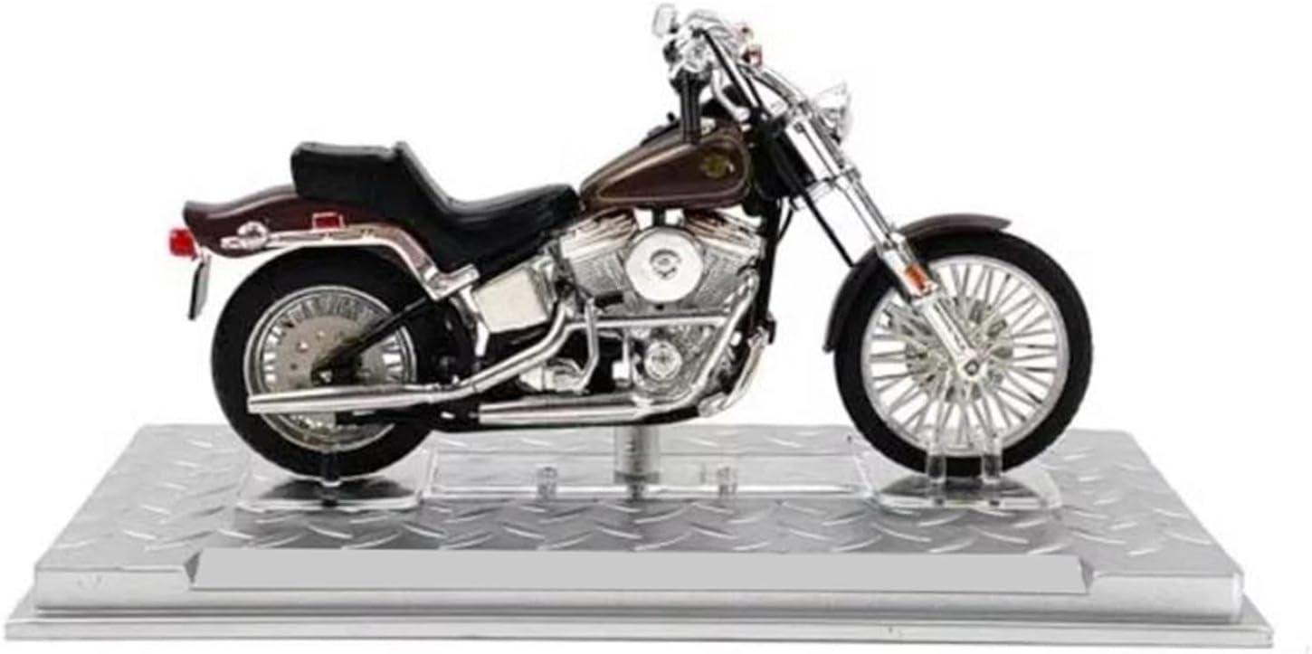 Modello di motocicletta per FXST Softail 1984, materiale del modello: lega + ABS Modello di auto giocattolo per motocicletta in scala 1:24, realizzato con precisione e attenzione a ogni dettaglio, questo modello di motocicletta offre una replica realistica dell'originale, perfetto per i giovani appassionati di motociclette che ammirano la cosa reale. Parti squisite progettate secondo le proporzioni dell'auto originale, il cruscotto, i pedali del freno e dell'acceleratore sono progettati per essere realistici e precisi. Modello di auto di simulazione La finitura liscia e senza sbavature e la vernice lucida e uniforme dimostrano una maestria artigianale eccezionale. Questo modello incarna lo stile di una motocicletta, soddisfacendo l'amore degli appassionati per i modelli nostalgici.