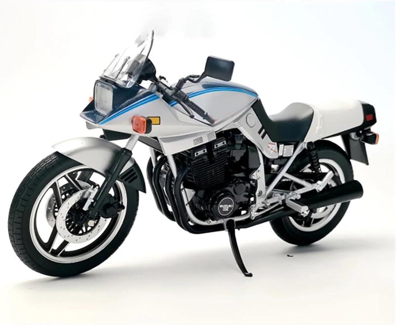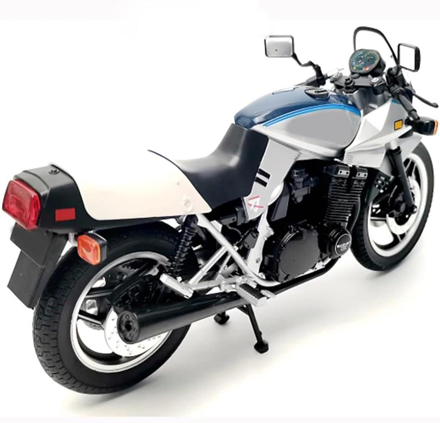 Modello di motociclette per GSX1100S Modello di auto giocattolo in scala 1:12, realizzato con precisione e attenzione a ogni dettaglio, questo modello di motocicletta offre una replica realistica dell'originale, perfetto per i giovani appassionati di motociclette che ammirano la cosa reale. Parti squisite progettate secondo le proporzioni dell'auto originale, cruscotto, pedali del freno e dell'acceleratore sono progettati per essere realistici e precisi. Modello di auto di simulazione Realizzato in resistente lega di zinco, è resistente alle cadute e all'usura, garantendo la durevolezza del modello e la sua lunga conservazione. La finitura della vernice è uniformemente liscia, con colori vivaci e duraturi che resistono allo sbiadimento e alle scheggiature, garantendo un aspetto costantemente brillante.
