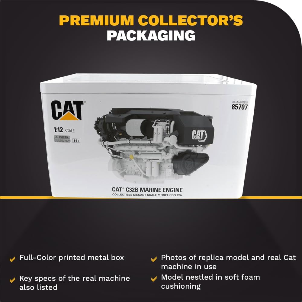 Prodotto con licenza ufficiale: Motore marino Cat C32B dettagliato, scala 1:12 Replica in metallo originale e in scala reale in qualità da collezione, inclusa scatola in metallo di alta qualità Dimensioni: circa 44,1 x 31,4 x 30,1 cm Design bianco e molte parti aggiuntive per un aspetto realistico Da 14 anni e non adatto come giocattolo
