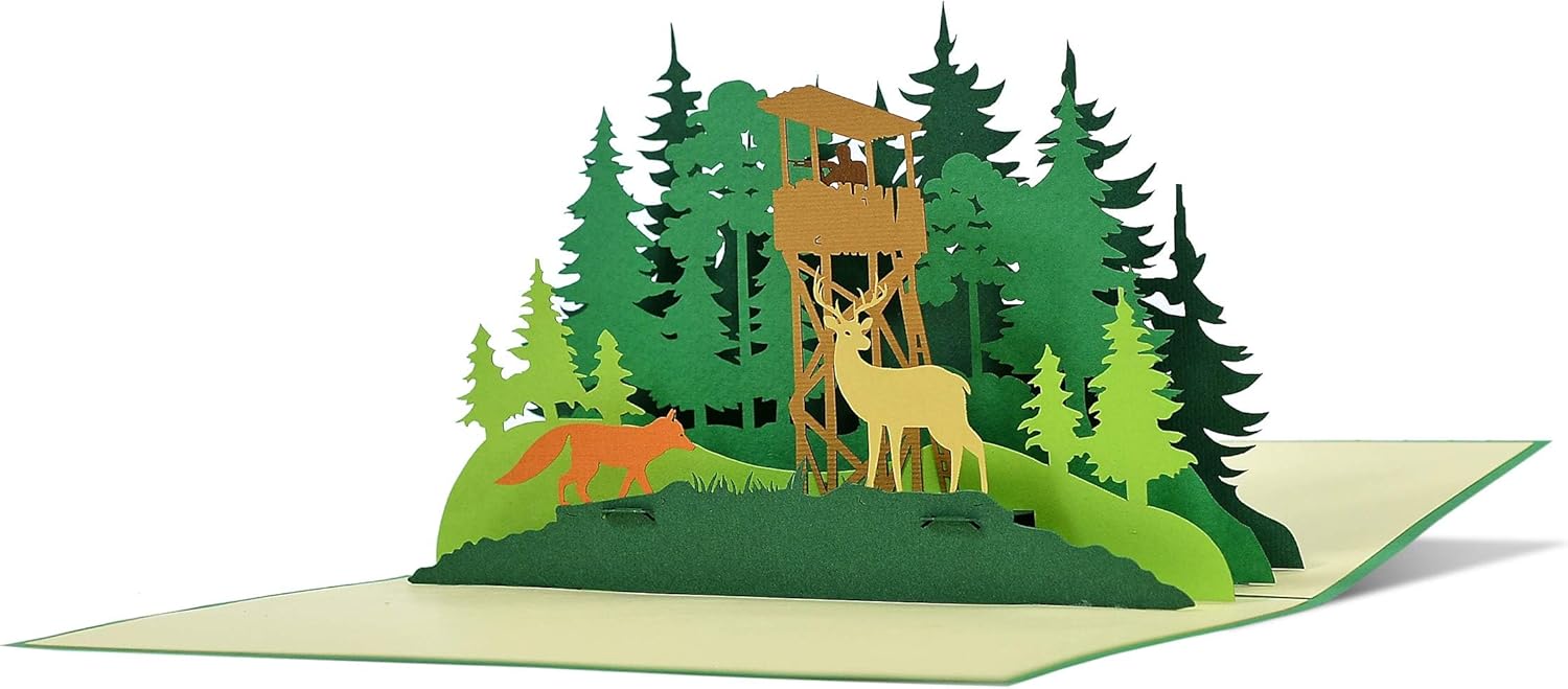 Regalo speciale: sorprendi tuo padre, marito o partner con questo biglietto di compleanno o di esame di caccia. Ottima confezione regalo in contanti o buono regalo per accessori da caccia. Regala un sorriso: che si tratti di inviare o regalare, questo biglietto pop-up porterà un sorriso su tutti i volti. Apprezzati anche come biglietti d'invito per una battuta di caccia. Commercio equo e qualità: le carte hanno un design sofisticato e sono realizzate a mano in condizioni eque in un'azienda a conduzione familiare, tagliate al laser e assemblate a mano. Dettagli: dimensioni chiuso: 12 x 18 cm, consegnato con busta abbinata e in custodia protettiva di cellophane. Spazio sufficiente: interno vuoto e spazio sufficiente per scrivere il tuo messaggio.