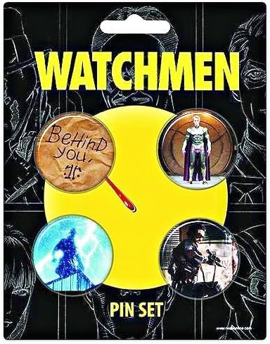 Aspetto nitido con questo set di spille con personaggi e frasi del prossimo film, Watchmen, basato sulla grafica più venduta