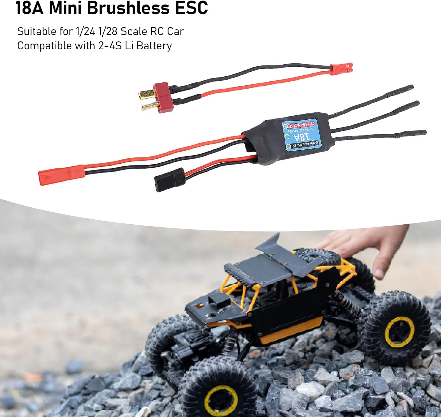 [Alta compatibilità] Questo mini ESC senza pennello 18A è progettato per funzionare perfettamente con K989, serie Mini Z e altri veicoli RC in 1/24 e 1/28. La sua forte compatibilità garantisce che possa essere utilizzato su una vasta gamma di modelli, rendendola una scelta versatile per gli appassionati di RC. Il design dell'ESC significa che può facilmente integrarsi in varie configurazioni senza richiedere ampie modifiche. [Performance potente] Con una corrente continua di 18A e una corrente di picco di 50A, questo senza spazzole offre prestazioni robuste per piccoli motori senza spazzole ad alta velocità. Il motore non si avvia immediatamente quando l'alimentazione è attivata, indipendentemente dalla posizione dell'acceleratore, prevenendo lesioni accidentali e garantendo ogni volta un inizio regolare. [Connettività versatile] Compatibile con batterie LI 2-4S, questo ESC è dotato di un connettore femminile banana 2.0, connettore femminile JST Power e plug maschio JST a T per connessioni versatili. Queste opzioni consentono una facile integrazione con varie fonti di alimentazione e di motore, rendendola una soluzione flessibile per diverse configurazioni RC. [Costruzione durevole] Fatto in rame, silicone e componenti elettronici robusti, questo senza spazzole RC presenta una bella maestria che garantisce durata e longevità. Il suo design robusto lo rende resistente ai danni, estendendo la sua durata di servizio anche in condizioni impegnative, in modo poter godere di prestazioni affidabili per gli anni a venire. [Caratteristiche di sicurezza avanzate] dotate di molteplici guardie di sicurezza tra cui protezione a bassa tensione, protezione del surriscaldamento, protezione dell'avvio dell'acceleratore, protezione della perdita del segnale e protezione di tensione anormale, questo ESC garantisce un funzionamento sicuro e stabile. Queste caratteristiche impediscono danni all'auto e alla batteria RC, fornendo tranquillità durante intense sessioni di corse o unità casuali.